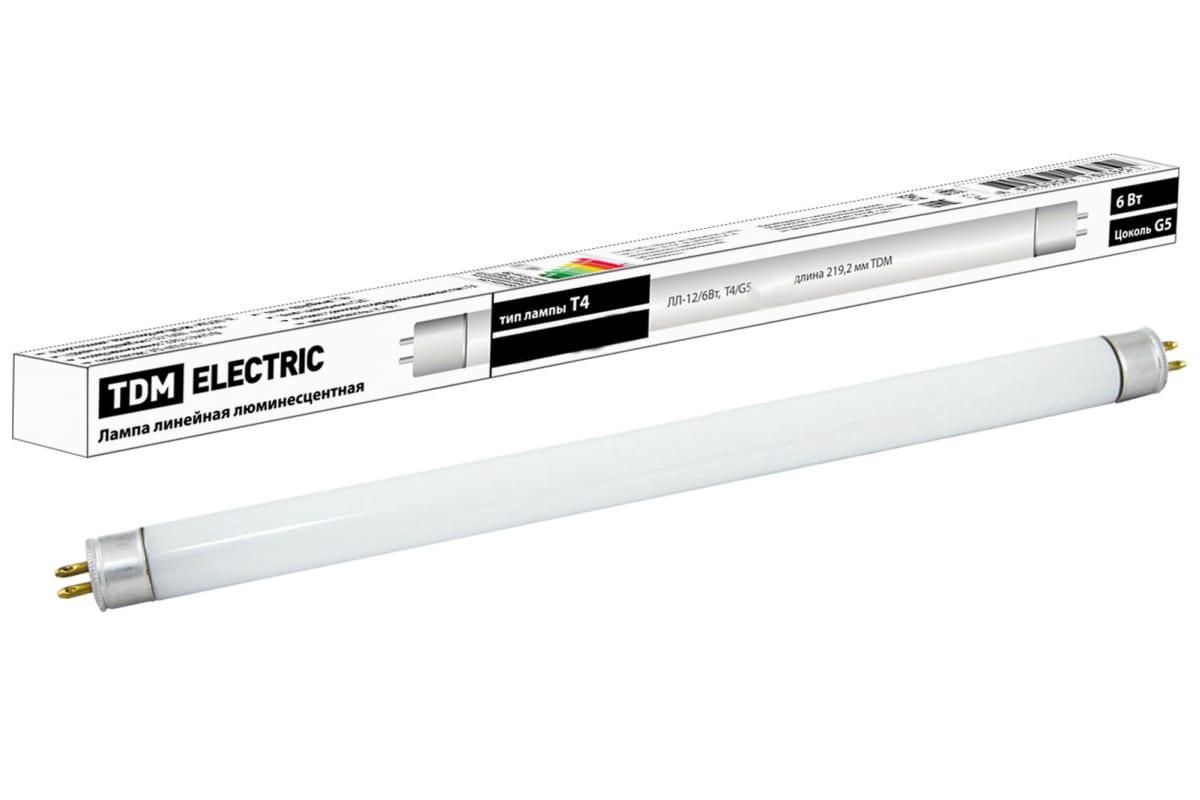 Лампа TDM люминесцентная линейная двухцокольная ЛЛ-12/6Вт, T4/G5, 6500 К, длина 219,2мм SQ0355-0002