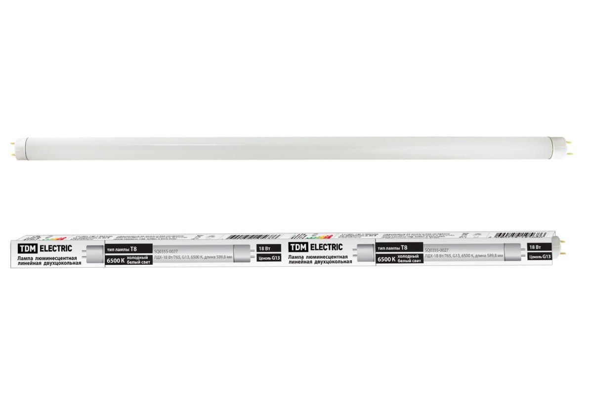 Лампа TDM люминесцентная линейная двухцокольная ЛДХ-18Вт/765, T8/G13, 6500 К SQ0355-0027