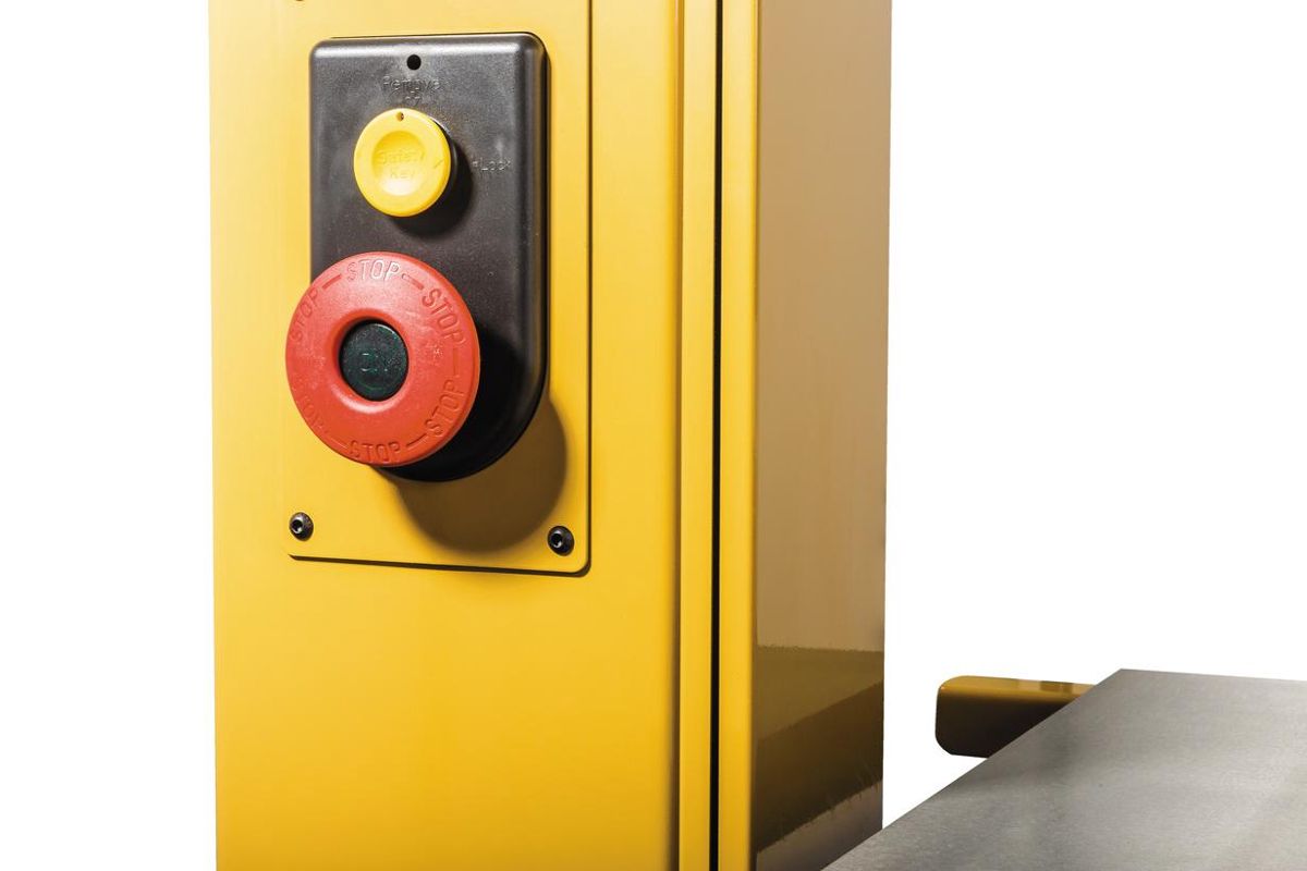 При экстренной необходимости оператор может остановить движение пильного полотна, тем самым обезопасить рабочий процесс.