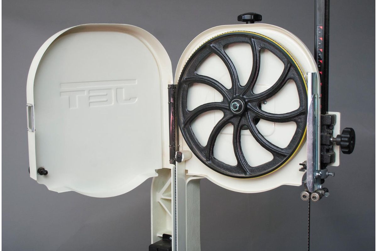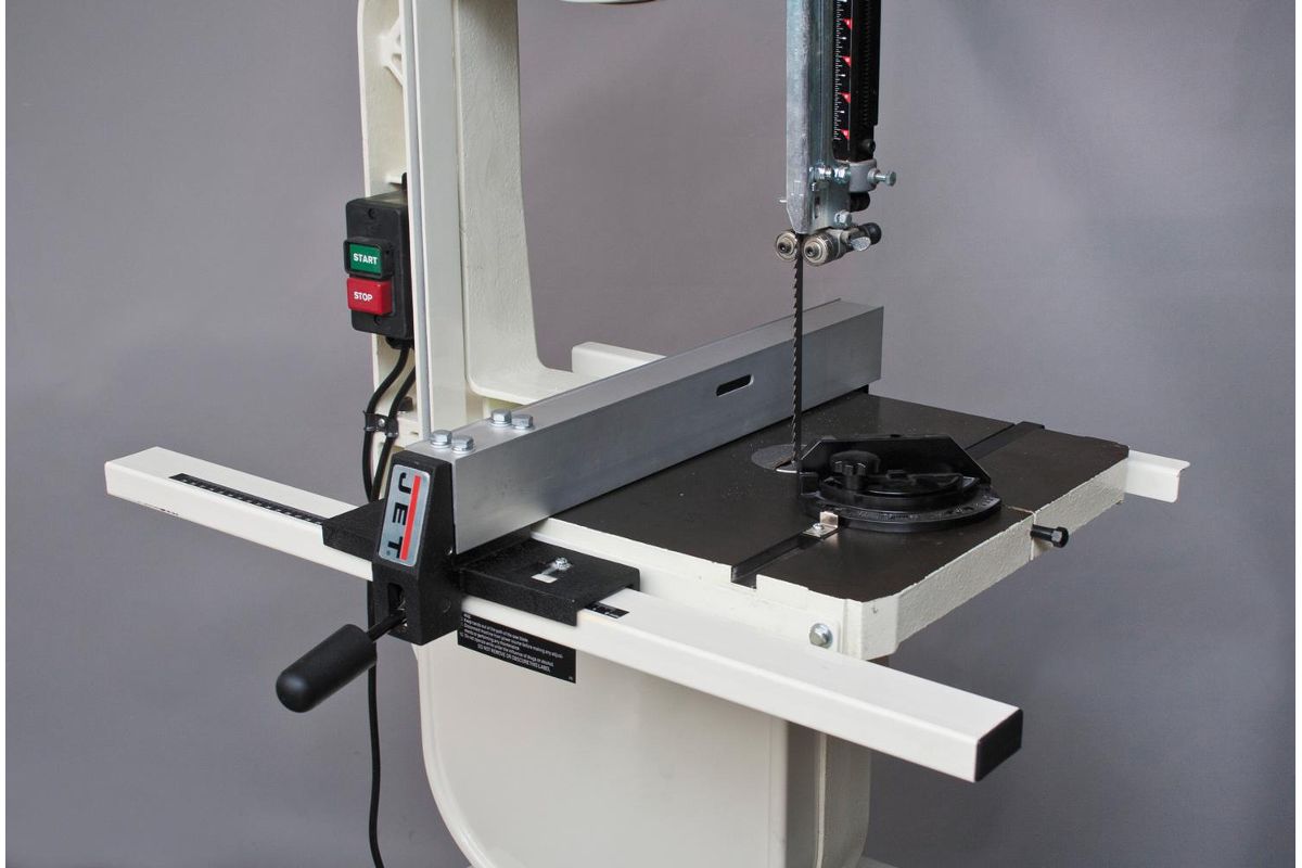 JET JWBS-14DXPRO 710116-RU – ленточная пила по дереву. Мощность 1500 Вт, пропиливает заготовки до 305 мм толщиной и 343 мм шириной. Применяется в мебельных мастерских, на производстве и т.д. Тумба-подставка с полочками приобретается дополнительно.