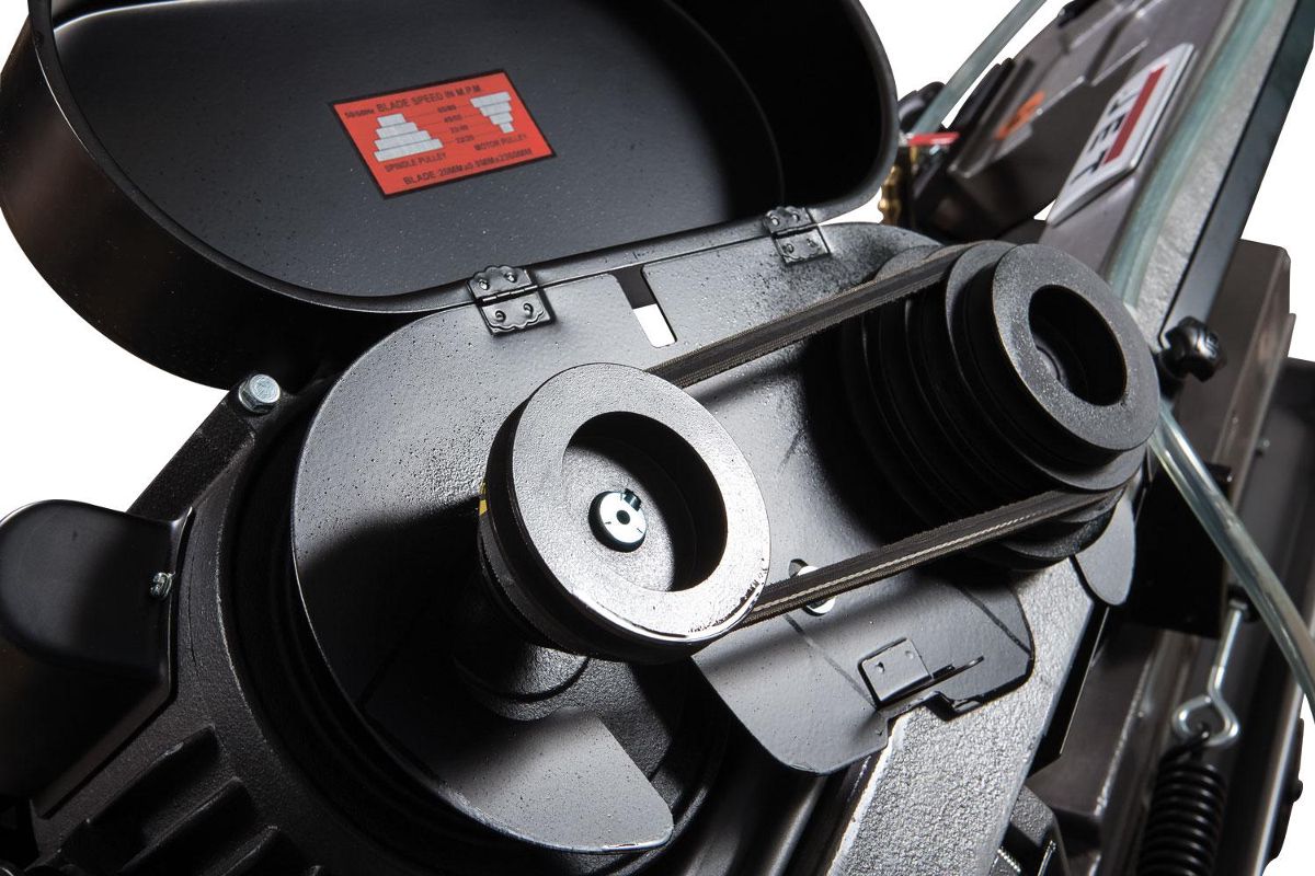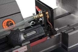 JET HVBS-712K T — ленточнопильный станок, предназначенный для распила металла и пластмасс в условиях серийного производства. Работает от трехфазного двигателя мощностью 1400 Вт. Глубина до 180 мм позволяет с легкостью распиливать трубы большого диаметра, швеллеры, уголки, другой профиль (в основном под прямым углом). Тиски поворачиваются на угол до 45°. В зависимости от материала заготовки можно выбрать одну из 4-х скоростей. Жидкостное охлаждение продлевает срок службы агрегата.