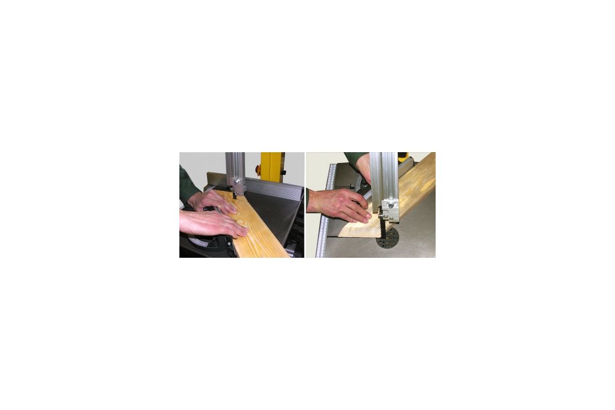 Станок очень функционален и удобен благодаря возможности наклона рабочего стола на 45 градусов. Стабилизатор пильной ленты регулируется по высоте. Предусмотрена система простой замены пильной ленты, что существенно экономит и время, и усилия пользователя. Предусмотрен индикатор натяжения пильной ленты.