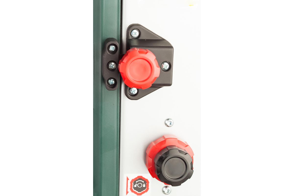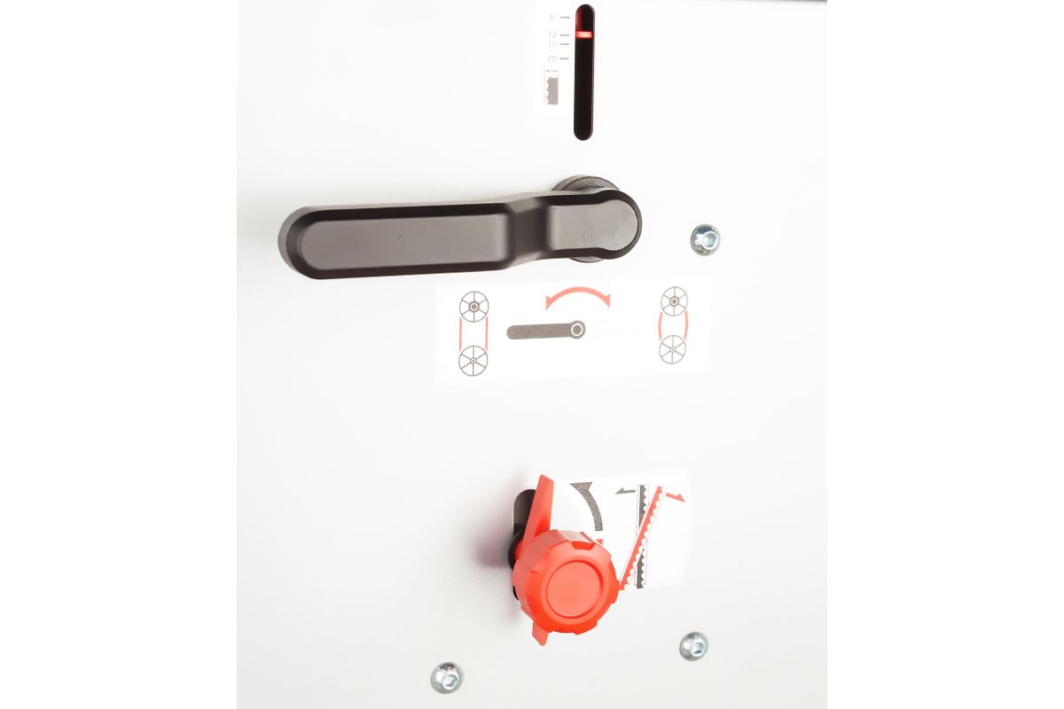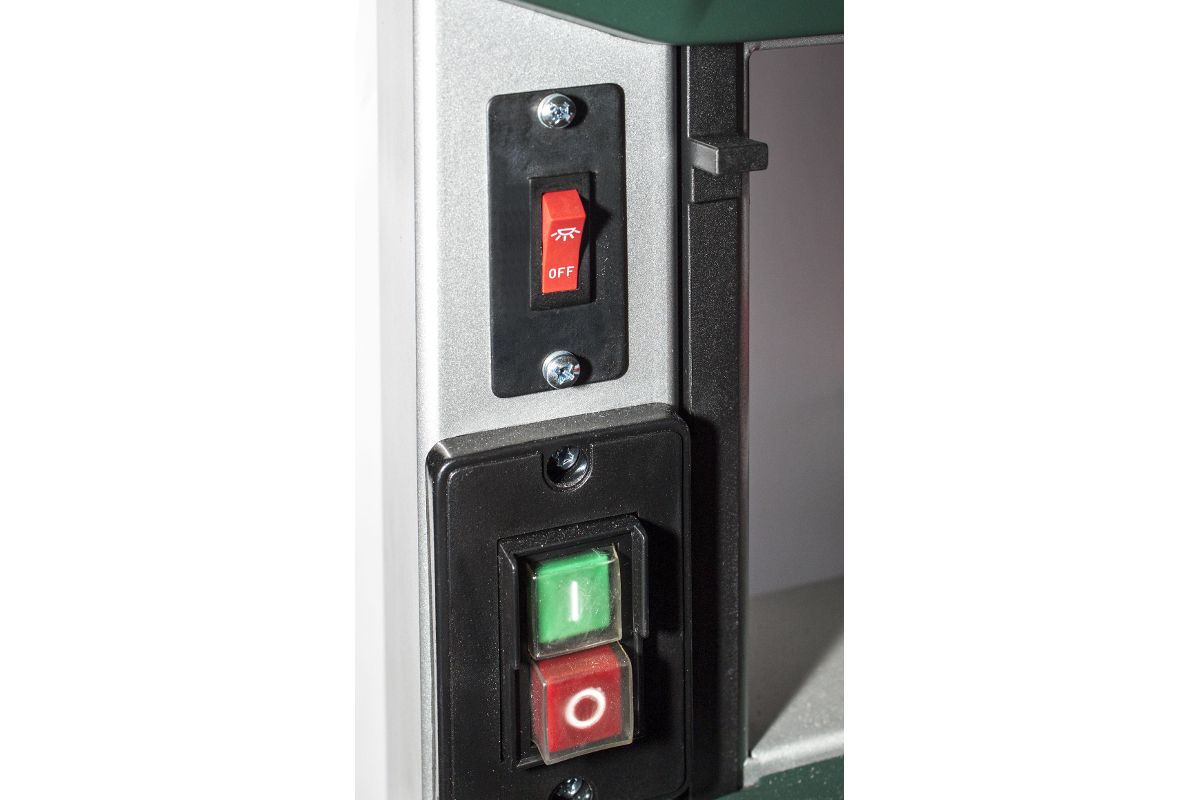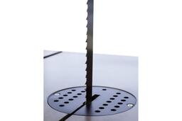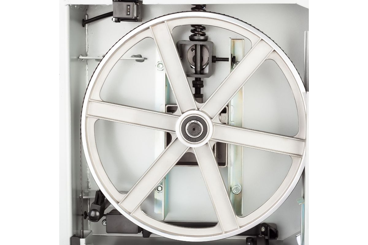 - Регулируемая прецизионная направляющая пильного полотна с тремя роликами из стали HSS вверху и внизу для высокой точности;