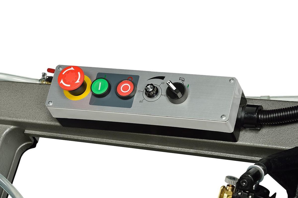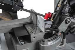 Ленточнопильный станок может работать в ручном режиме, а также в режиме пиления в цикле. Подъем пильной рамы осуществляется вручную, а пиление происходит автоматом до отключения вращения полотна после окончания пиления. Плавная регулировка скорости опускания пильной рамы позволит подобрать оптимальный режим резания.