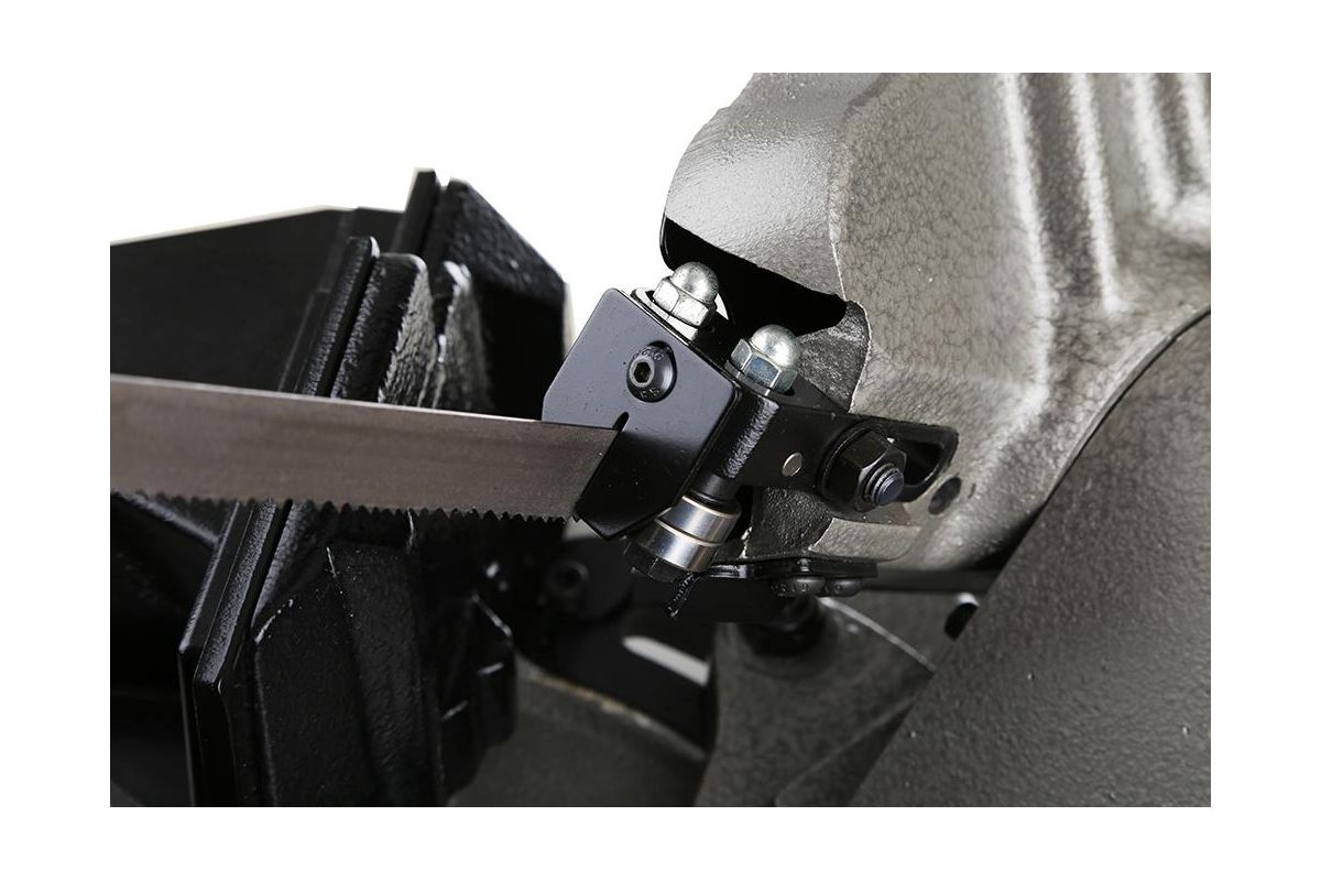JET J-351V 50000336M – ленточная пила по металлу. Мощность 1500 Вт, прорезает заготовки диаметром до 170 мм. Три предустановки угла пропила – 45, 60 или 90°. Подойдёт для использования в мастерской или на производстве.
