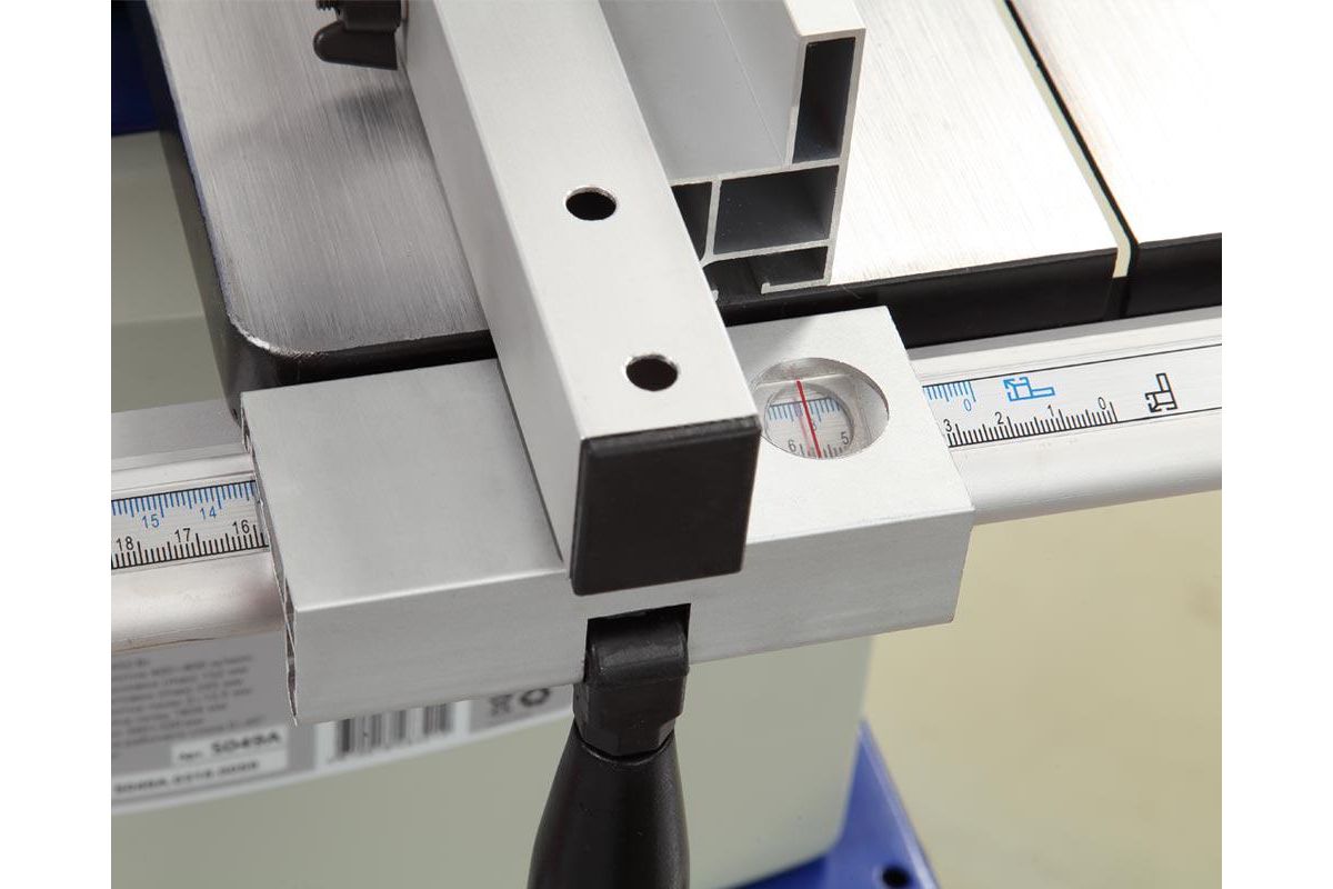 Угловой упор из пластика дает возможность распиливать заготовки под заданным углом.
