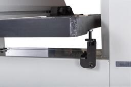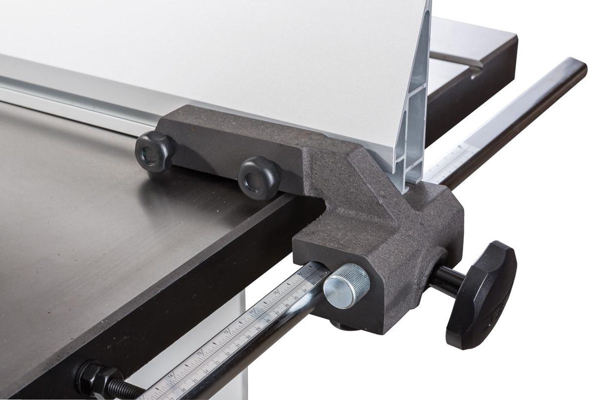 Упор с микрорегулятором позволяет нарезать несколько заготовок подряд без лишней настройки станка. Миллиметровая шкала позволяет точно выставить ширину.