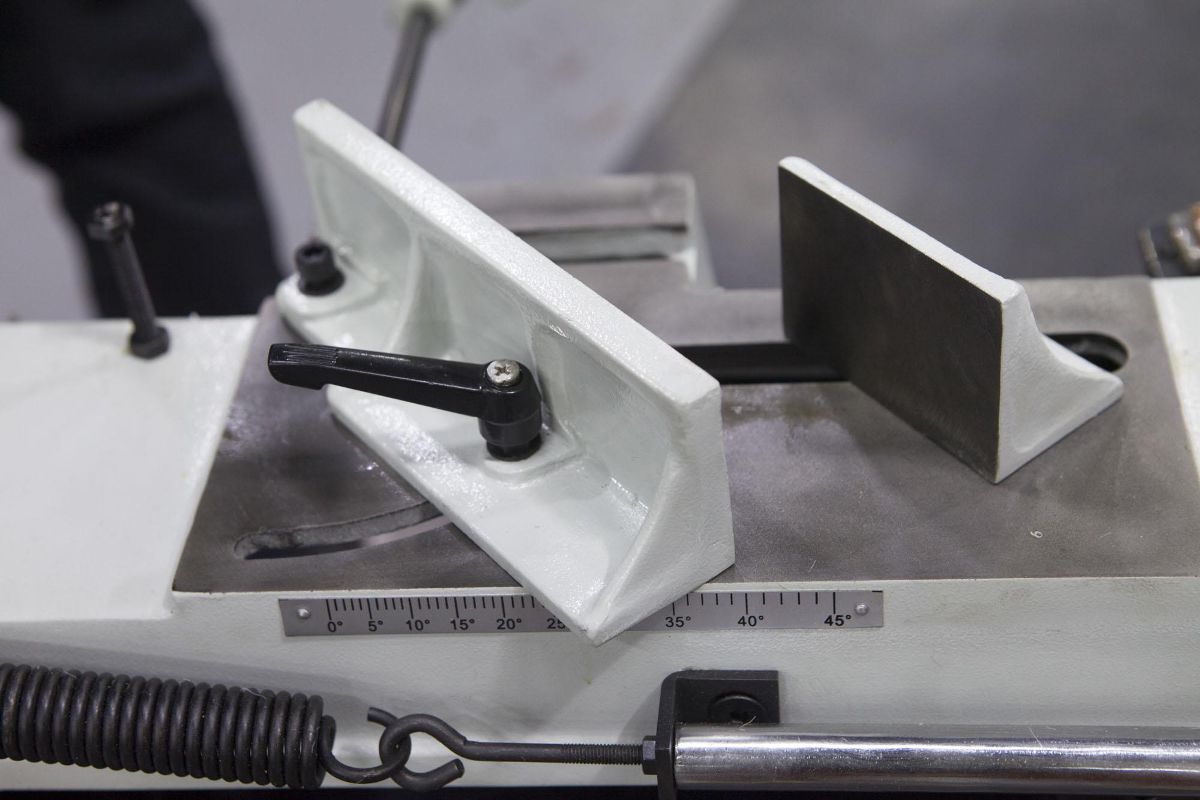 Возле тисков есть мерная линейка. Поможет точно отрегулировать нужный угол.