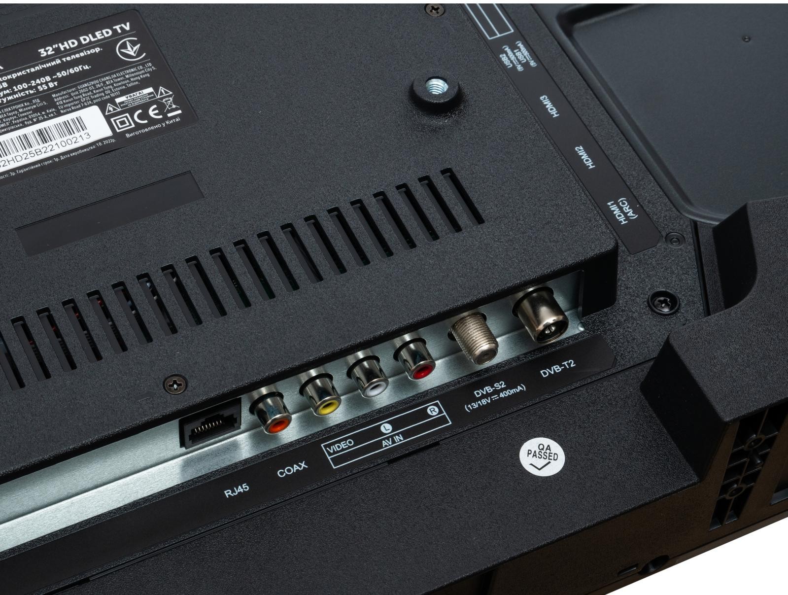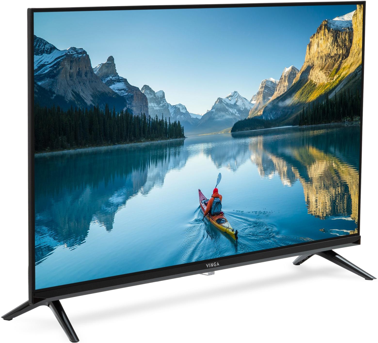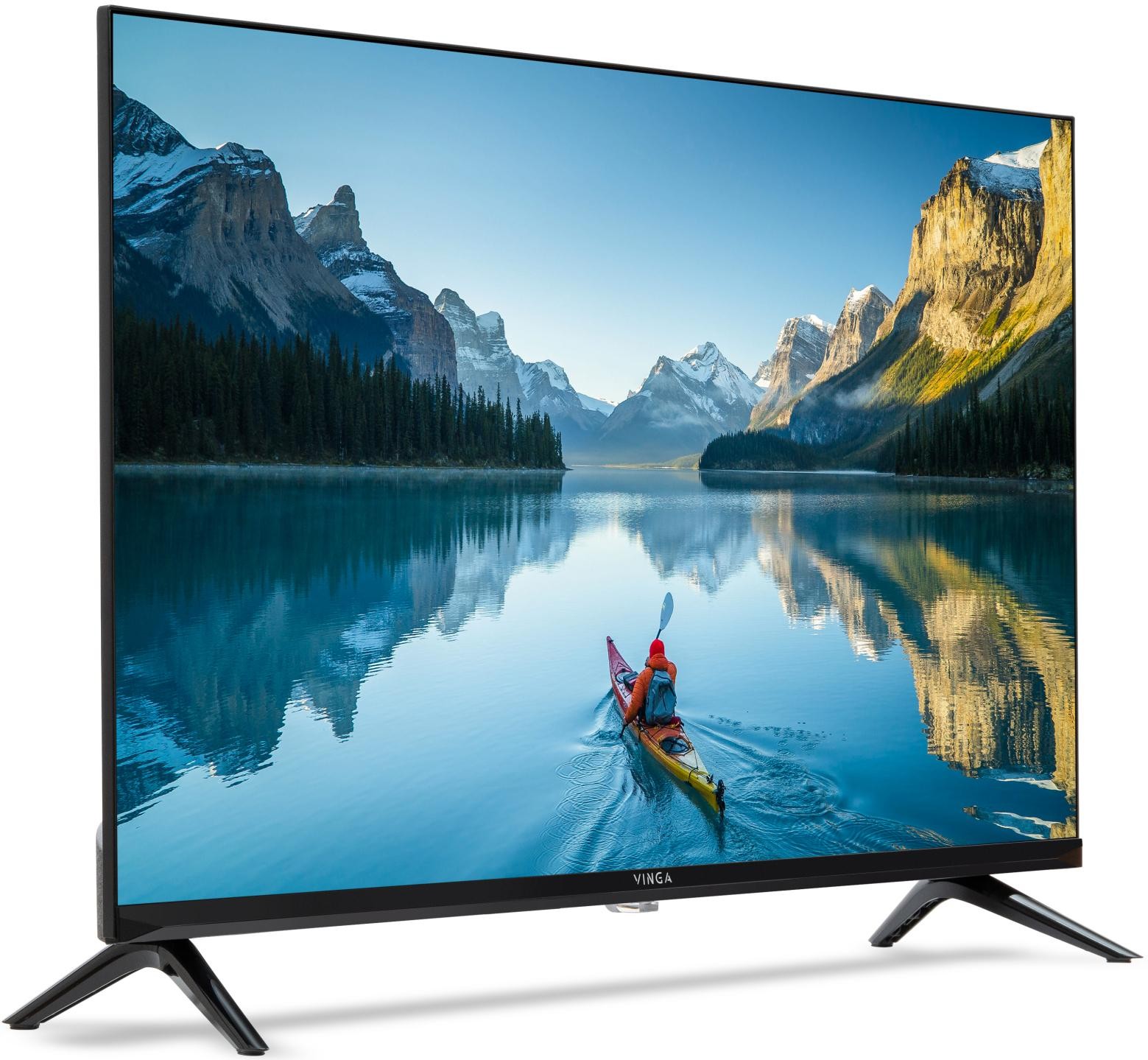 Vinga S32HD25B має чорний корпус, що ідеально впишеться в приміщення з будь-яким дизайном. Крім того, вага телевізора без підставки – всього 3,6 кг. Ви без проблем зможете поставити його на тумбу або почепити на стіну, скориставшись кріпленням VESA.