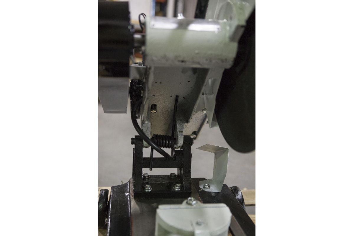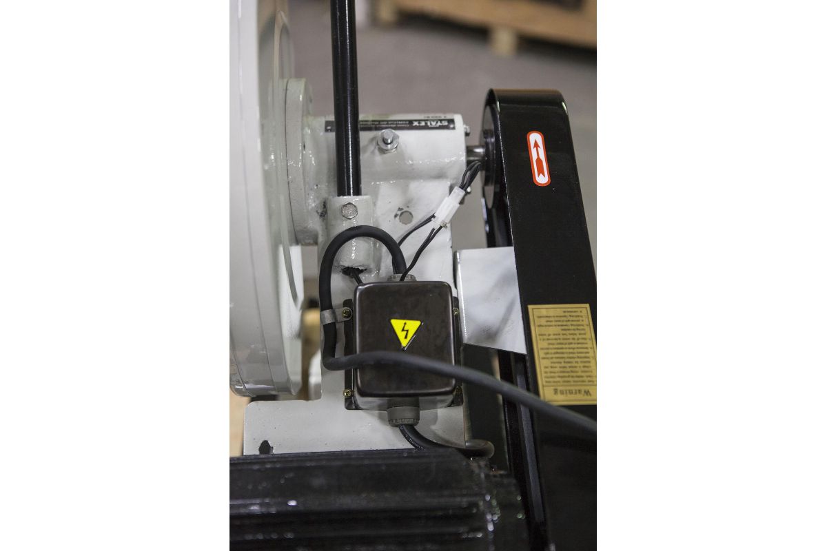 Мощный высокооборотистый трехфазный двигатель 3 кВт с ременным приводом, оснащенный абразивным отрезным диском распространенного стандарта Ф400х25,4(32)х3,2мм обеспечивает эффективное и точное пиление. Передача вращения происходит при помощи двух прочных поликлиновых ремней, подобрать которые, при необходимости их замены, можно в любом магазине автозапчастей.