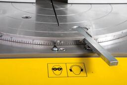 Поворот пильной рамы в горизонтальной плоскости -45 до +60 градусов с удобной фиксацией угла;