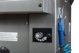 Дисковый отрезной станок для алюминия JET EVC-400DGSP (400 В) размещается на тумбе, при этом высота рабочего стола составляет 950 мм, что обеспечивает удобство установки металлической заготовки. Отличительной особенностью данного оборудования является подъем пильного диска автоматическим путем, при этом оператор самостоятельно регулирует скорость подъема в зависимости от сечения материала. Агрегат работает с такими материалами как твердый пластик или алюминий. Пневматические прижимы обеспечивают надежную фиксацию заготовок в горизонтальной и вертикальной плоскости. После окончания пиления происходит мгновенная остановка диска. Наличие системы СОЖ дает возможность выполнять распиловку в течение длительного времени. Рабочий стол изготавливается из алюминия, что гарантирует его высокую прочность и долговечность.