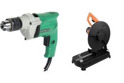 В состав набора входят: Отрезная пила ВИХРЬ ОП-355/2200 круг: 355x25.4, 2200 Вт, глубина пропила 115 мм, Дрель ударная HITACHI DV13SSNA ударная дрель 550Вт 2900 оборотов в минуту 29000 уд/мин