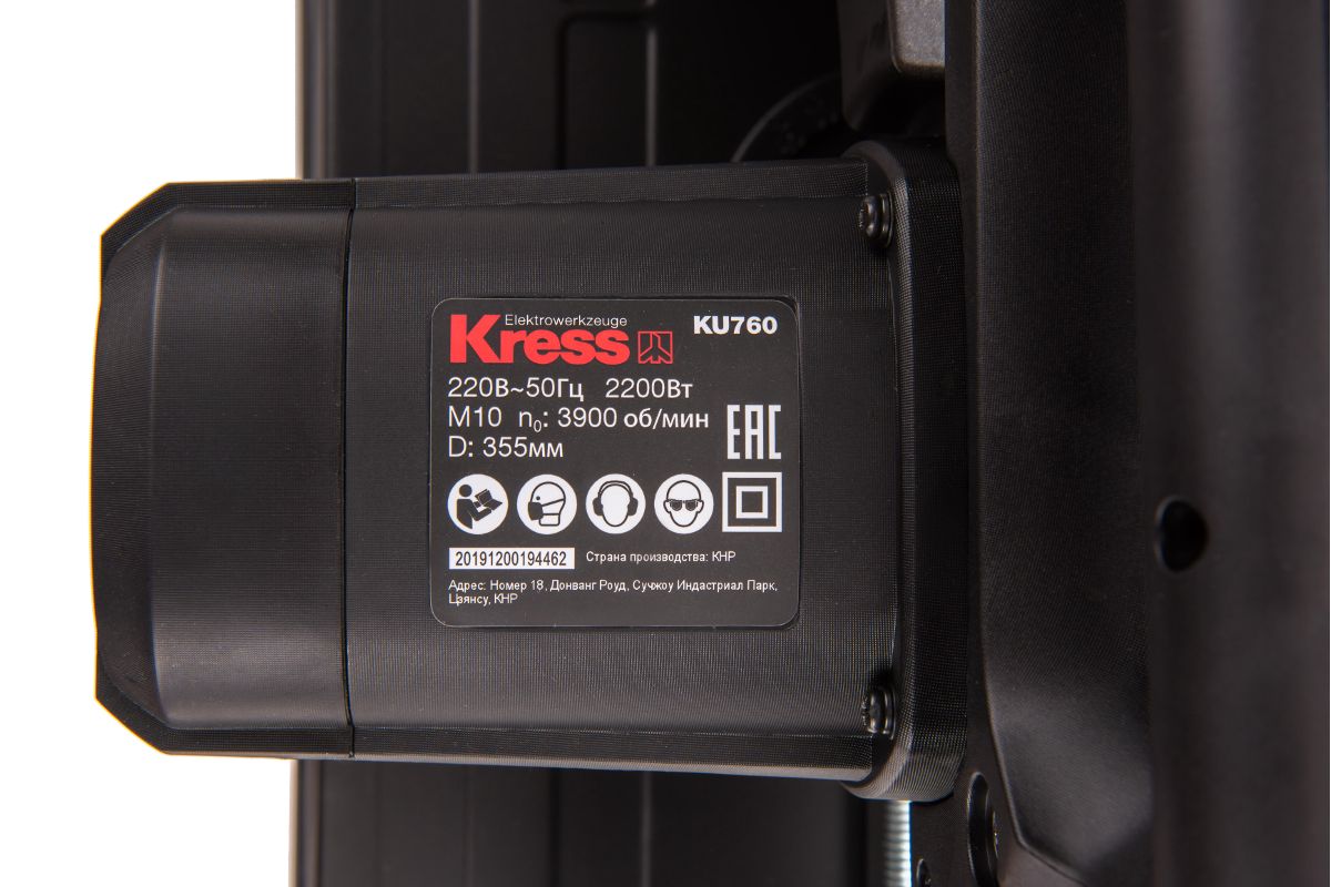KRESS KU760 — профессиональный инструмент для выполнения монтажных работ. Мощность — 2200 Вт позволяет развивать скорость — 3900 об/мин. Диск размером 355х25.4 мм крепится на шпиндель с резьбой М10. Вес инструмента — 16 кг.