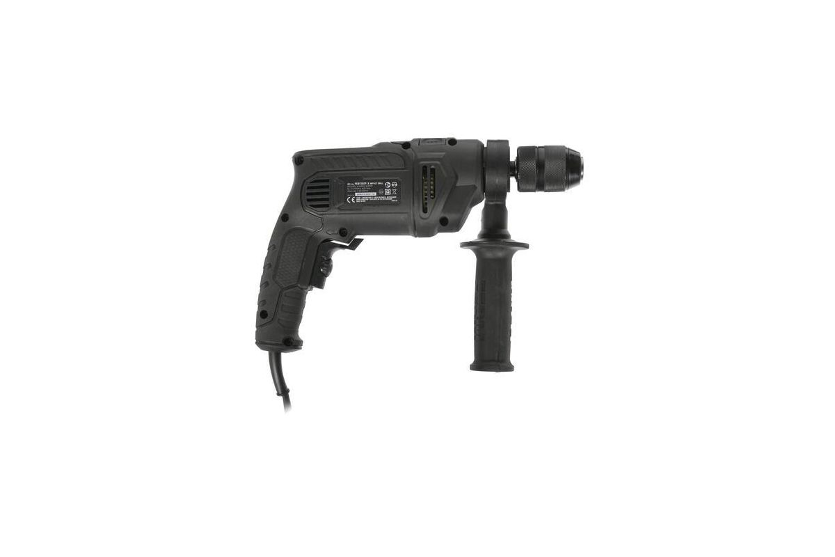 Ударная дрель сверлит отверстия с ударом и без, что позволяет работать с твердыми материалами. Эргономичная основная рукоять и поворотная дополнительная обеспечивают удобное удержание инструмента. Функция реверса служит для легкого изъятия застрявшего сверла. Контролировать и устанавливать необходимую глубину сверления удобно с помощью ограничителя.