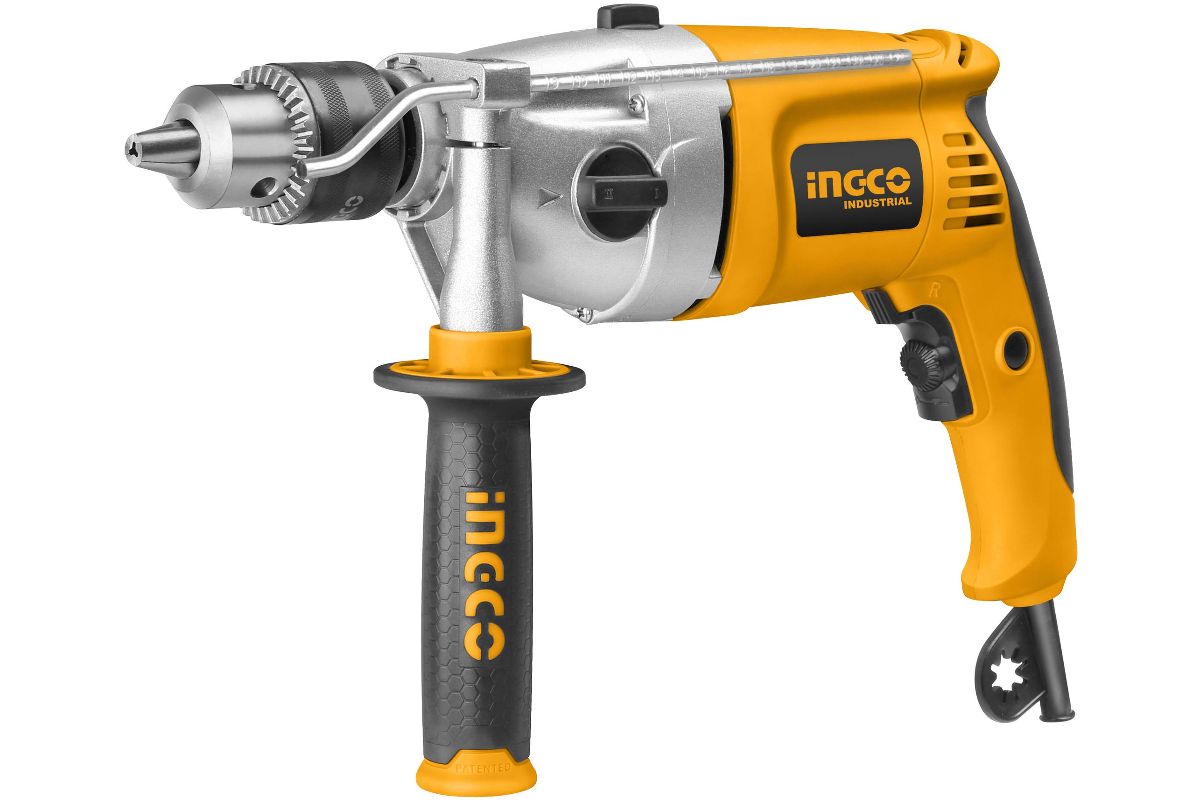 Ударная электрическая дрель INGCO ID211002 мощная и недорогая модель профессионального применения линейки INDUSTRIAL. С помощью данного инструмента можно точно, аккуратно и безопасно просверлить отверстия в металле, пластике, дереве и бетоне, а также производить сверление с ударом.
