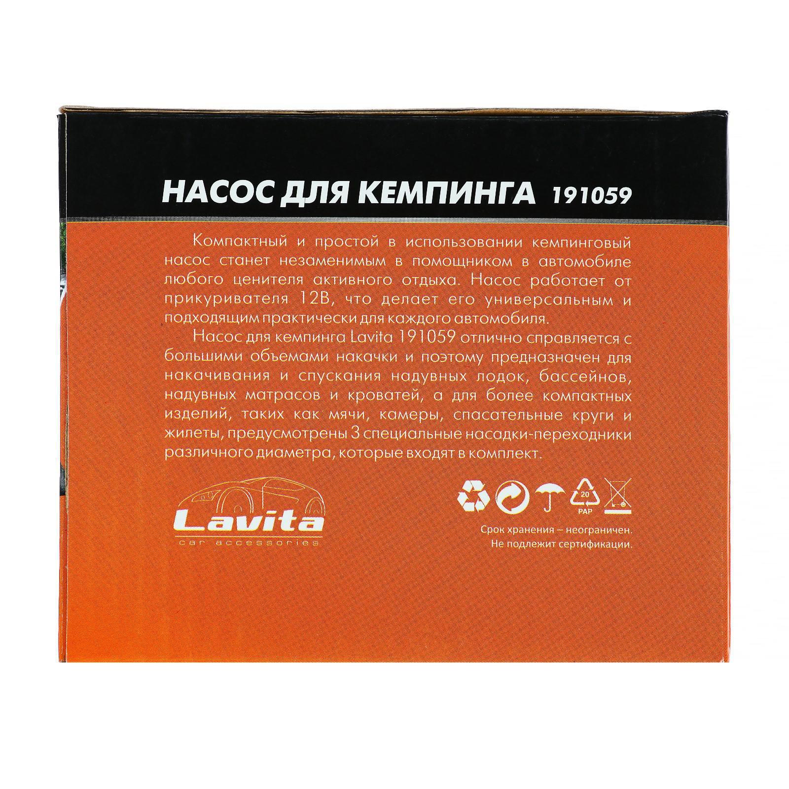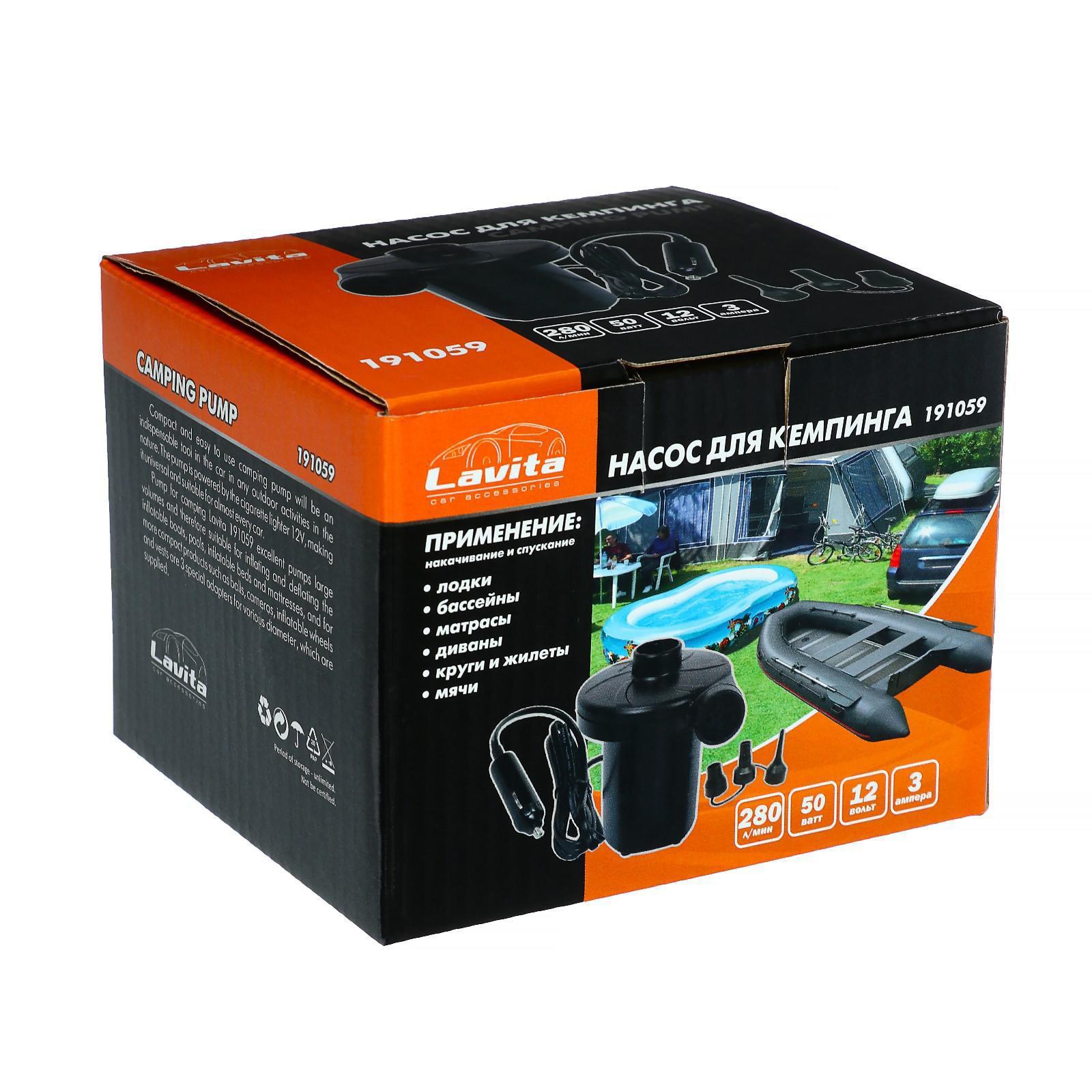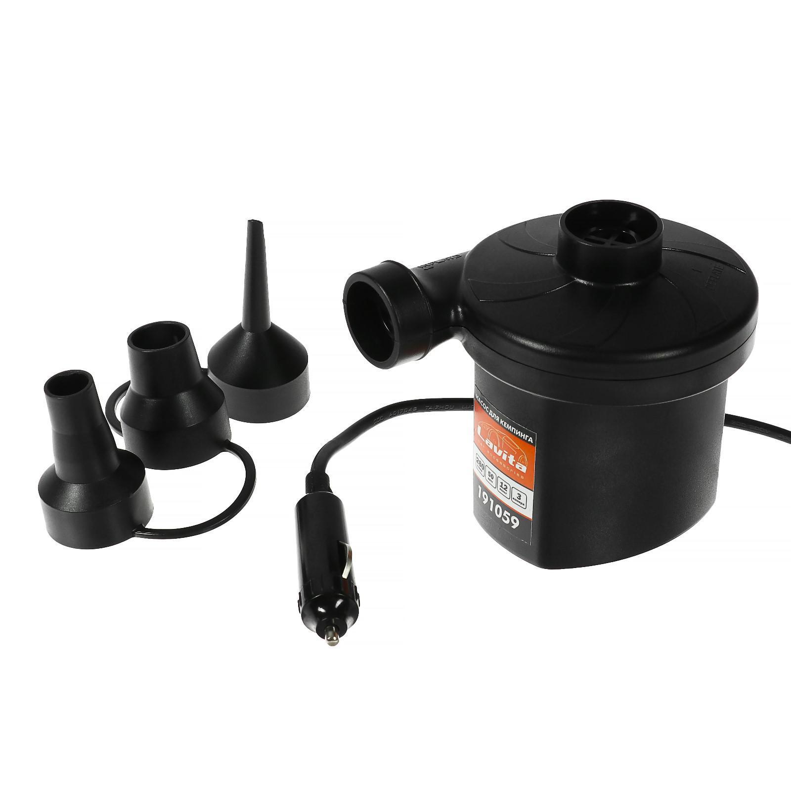 Насос электрический 12 В Lavita, от прикуривателя, 3 насадки