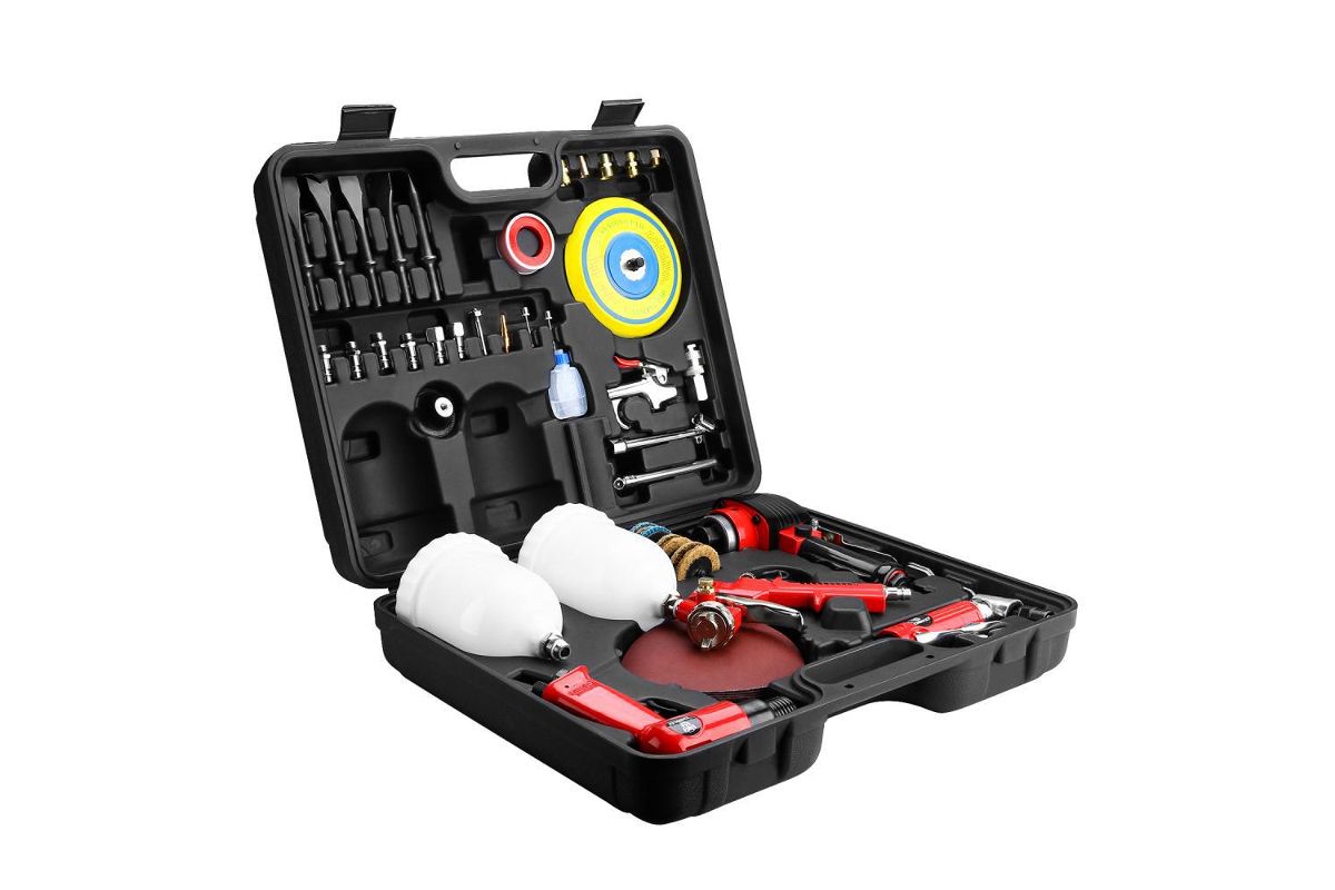 В набор пневмоинструмента и аксессуаров DEKO DKPT53 Premium 53 предмета в чемодане входят: