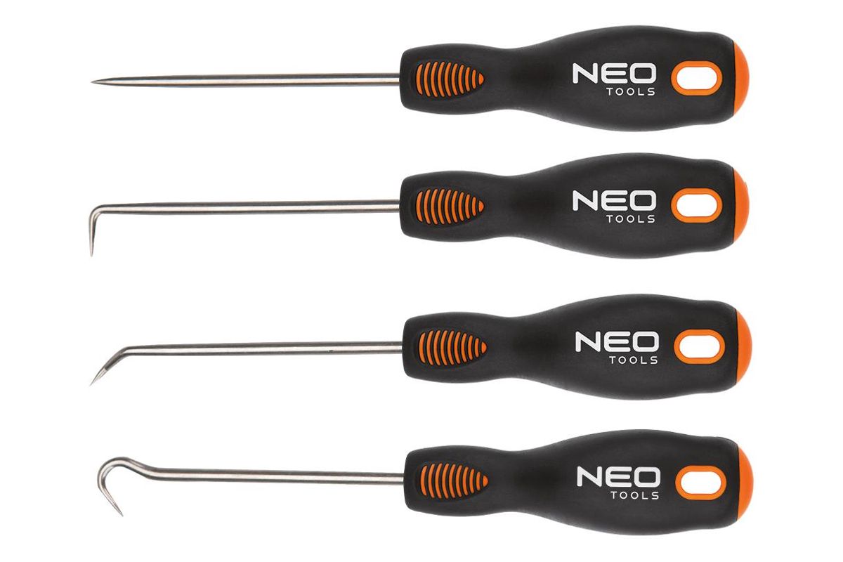 Набор крючков NEO, в наборе 4 инструмента. Изготовлены из прочной хромованадиевой стали. Трехгранная форма рукоятки с профилированной опорой для большого пальца уменьшает нагрузку на ладонь во время работы. Двухкомпонентная рукоятка предотвращает скольжение в ладони, стойкая к воздействию химических веществ, масел и смазок. Качество инструмента подтверждено сертификатом TUV и 25-летней гарантией производителя. Бренд NEO оправдывает ожидания профессионалов.