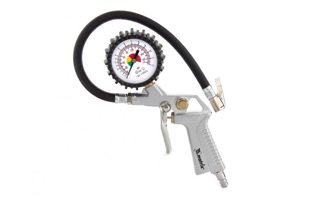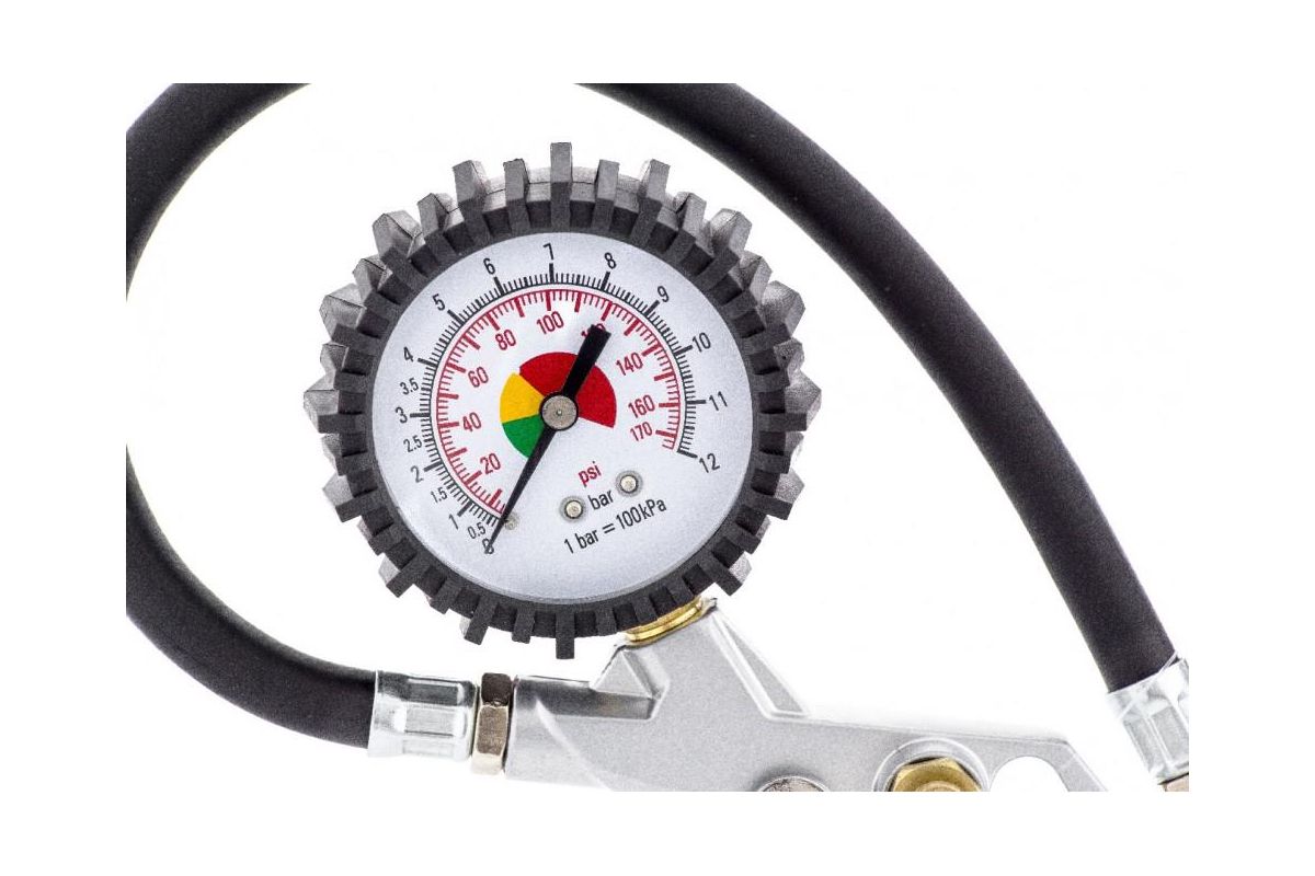 - Манометр на пистолете для подкачки шин дает возможность максимально точно набрать необходимое давление;