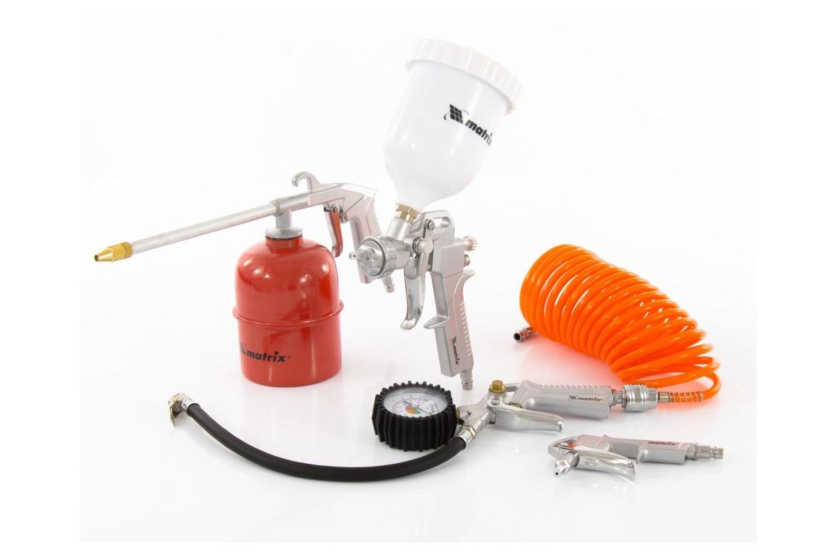 Набор пневмоинструмента MATRIX 57304 5 предметов быстросъемное соед. краскорасп. с верхним бачком