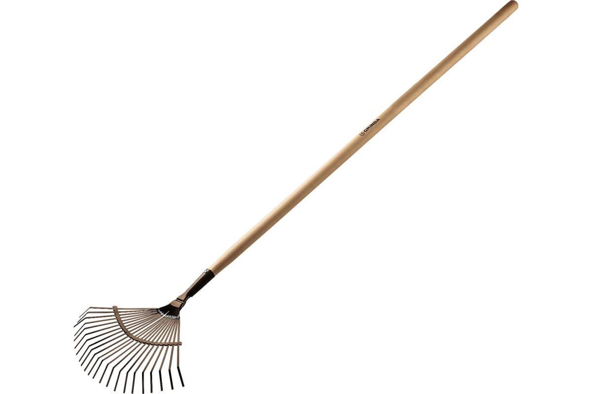 Грабли GRINDA 39593 22 плоских зубца, 440х260х1500 мм, веерные, с дерев.черенком