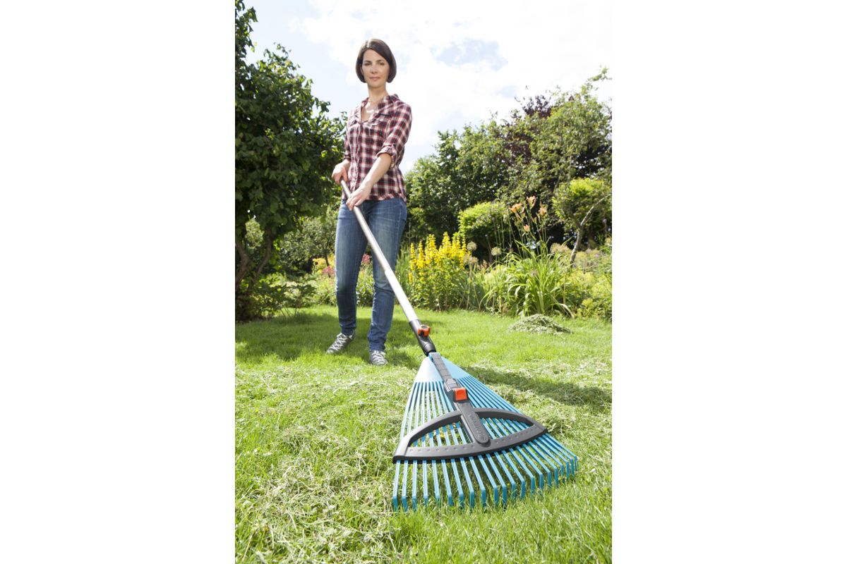 Грабли пластиковые веерные регулируемые для Комбисистемы GARDENA представляют собой идеальный инструмент для сбора листьев, скошенной травы, разбросанного ветром материала и прочих садовых отходов. Расстояние между гибкими пластиковыми зубьями легко регулируется. Благодаря рабочей ширине от 35 до 52 см собирать можно как крупный, так и мелкий материал. Грабли могут использоваться с любой ручкой Комбисистемы GARDENA в зависимости от роста пользователя. Гарантия 25 лет.