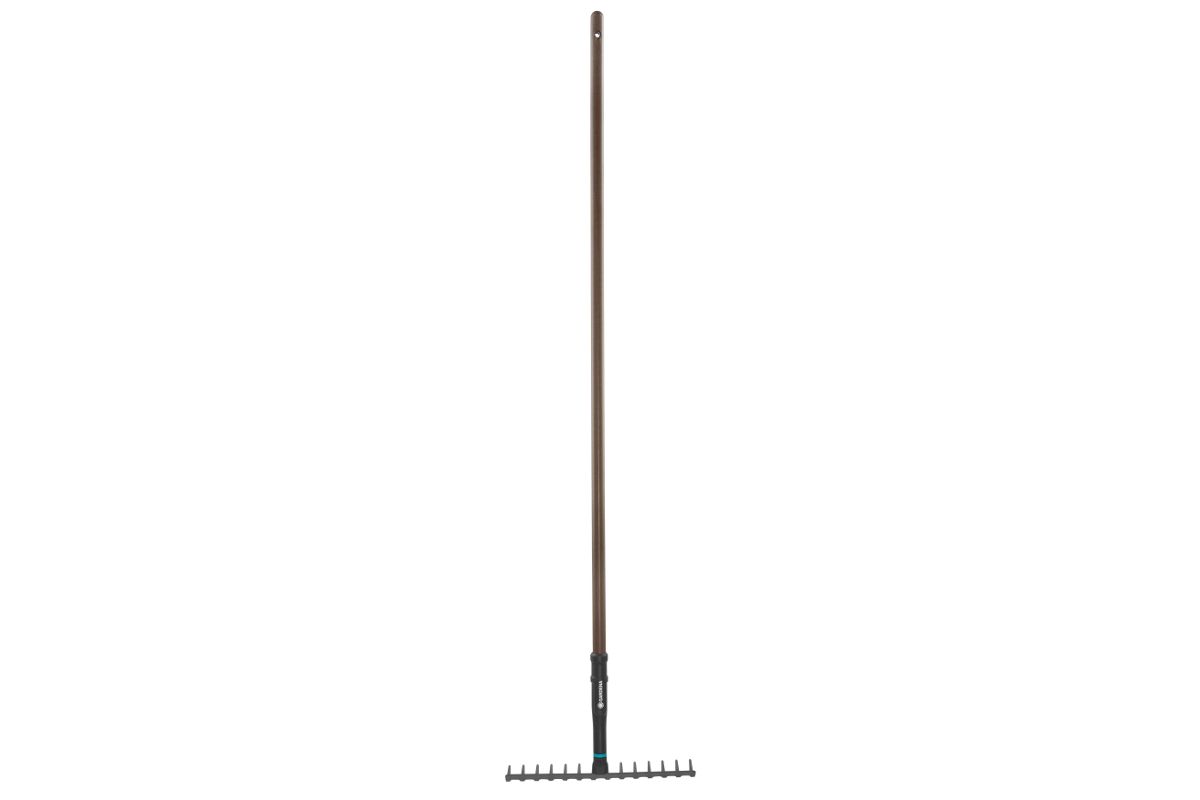 Грабли GARDENA NatureLine - многоцелевой инструмент для сгребания мусора или травы, выравнивания, рыхления и аэрации почвы на клумбах и грядках. Грабли имеют рабочую ширину 36 см (14 зубьев), а прочные зубья, изготовленные из качественной стали, способны выдерживать любые нагрузки и обеспечивают эффективную работу. Лакированная рукоятка из бука (сертифицирована FSC®) образует прочное соединение с граблями - не шатается, не деформируется. Гарантия - 10 лет.