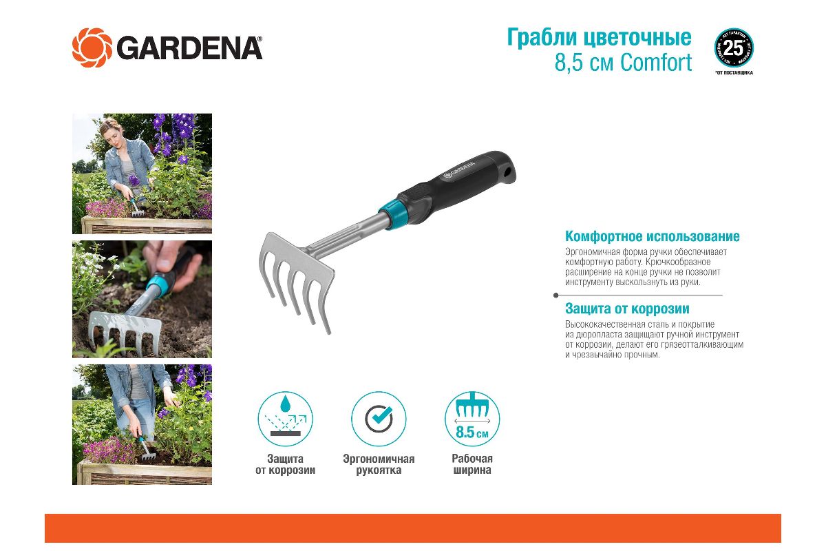 Грабли GARDENA Comfort 08958-20.000.00 цветочные 8.5см (ручной инструмент)