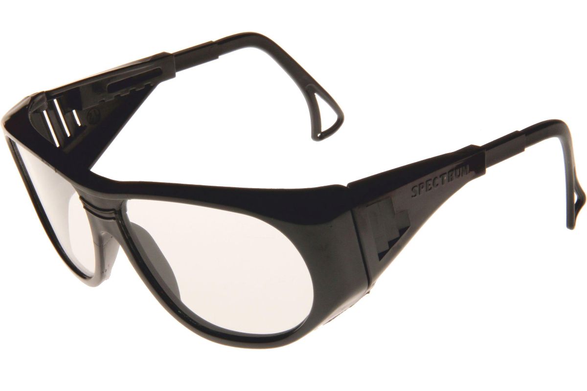 Очки универсального применения с широкой боковой защитой, вентиляционными отверстиями и регулируемым по длине заушником.