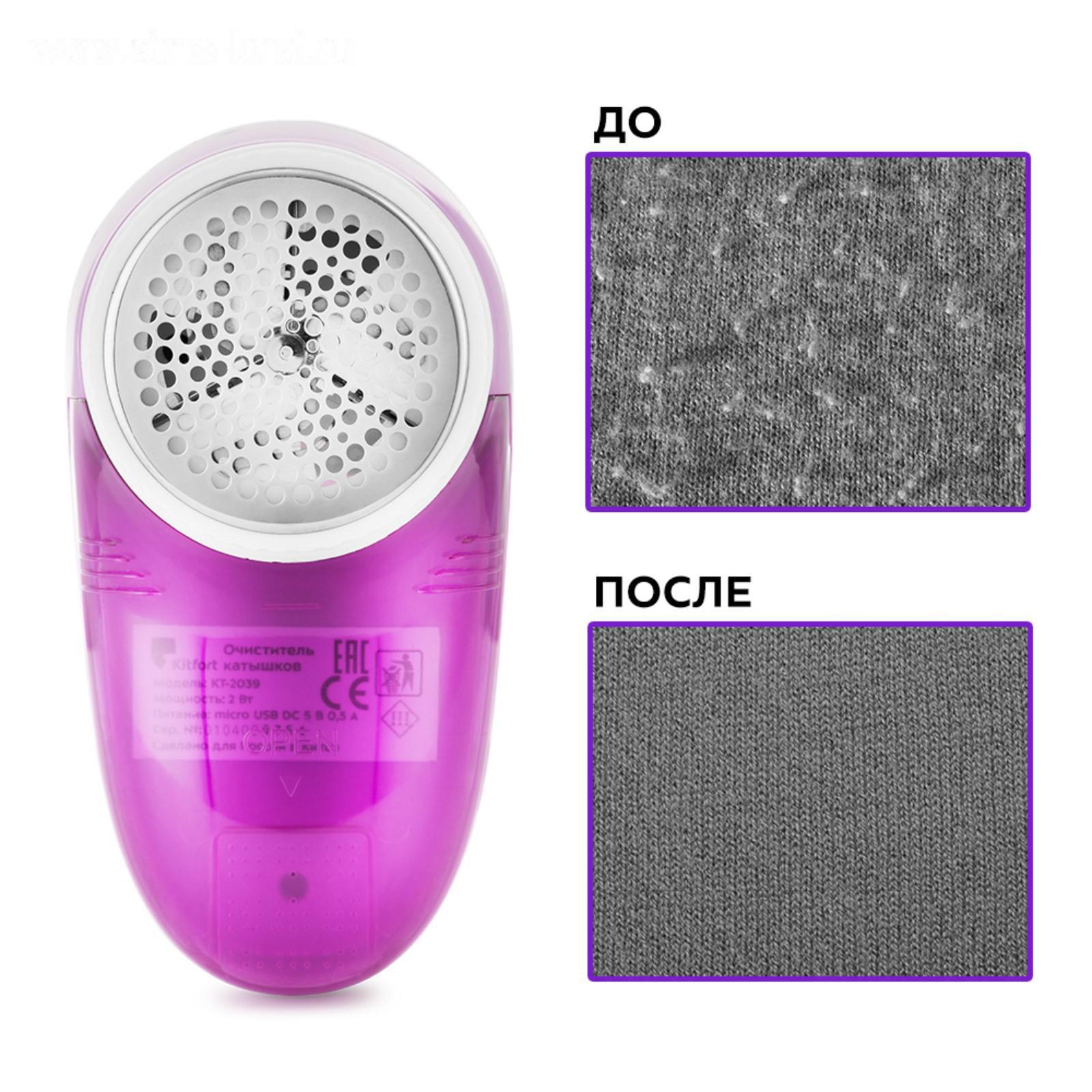 Машинка для удаления катышков Kitfort КТ-2039, 2 Вт, от АКБ, бело-сереневая