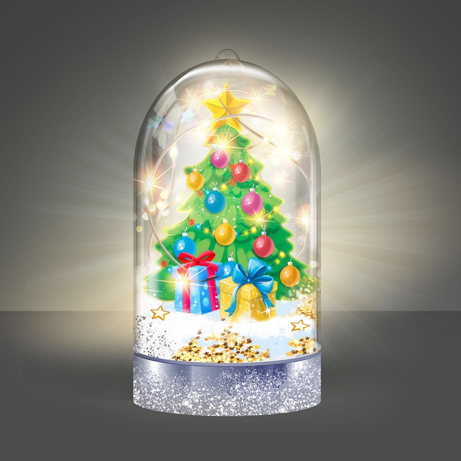 В наборе: купол, гирлянда, деревянная заготовка, краски, кисть, чудо-снег, блёстки.