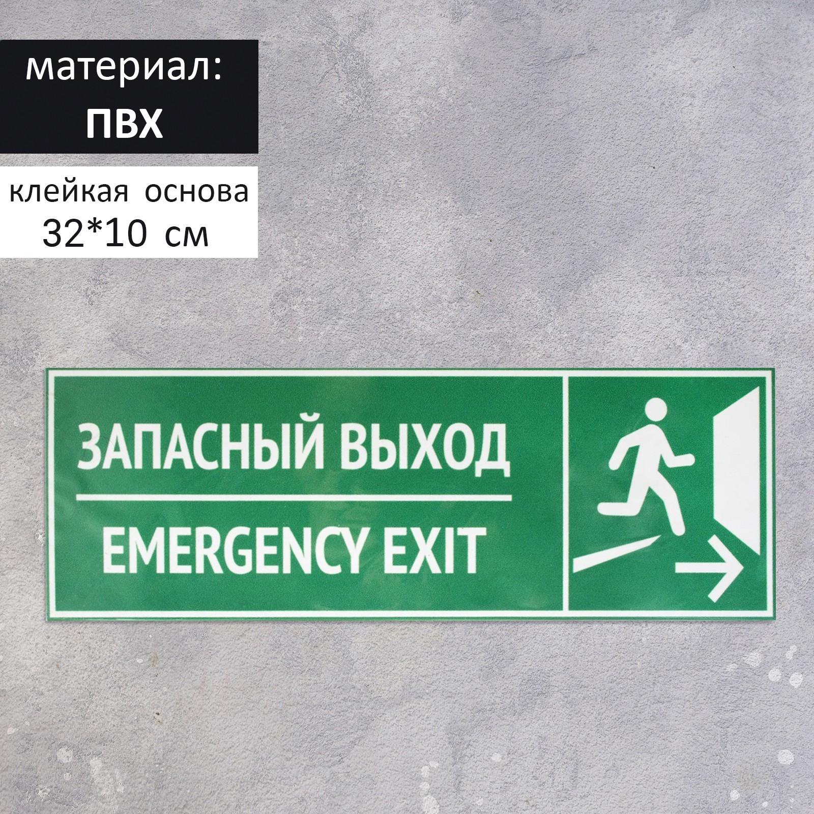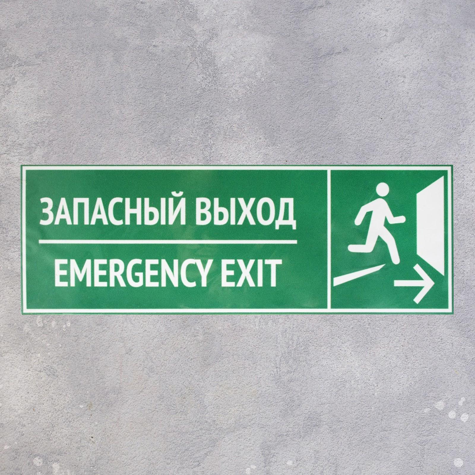 Табличка "ЗАПАСНЫЙ ВЫХОД" 100 х 320, клейкая основа