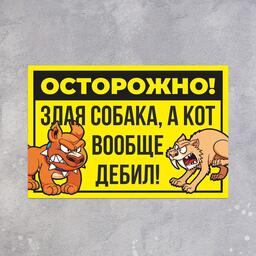 Табличка "Осторожно собака и кот" 300 х 200, цвет чёрно - жёлтый, клейкая основа