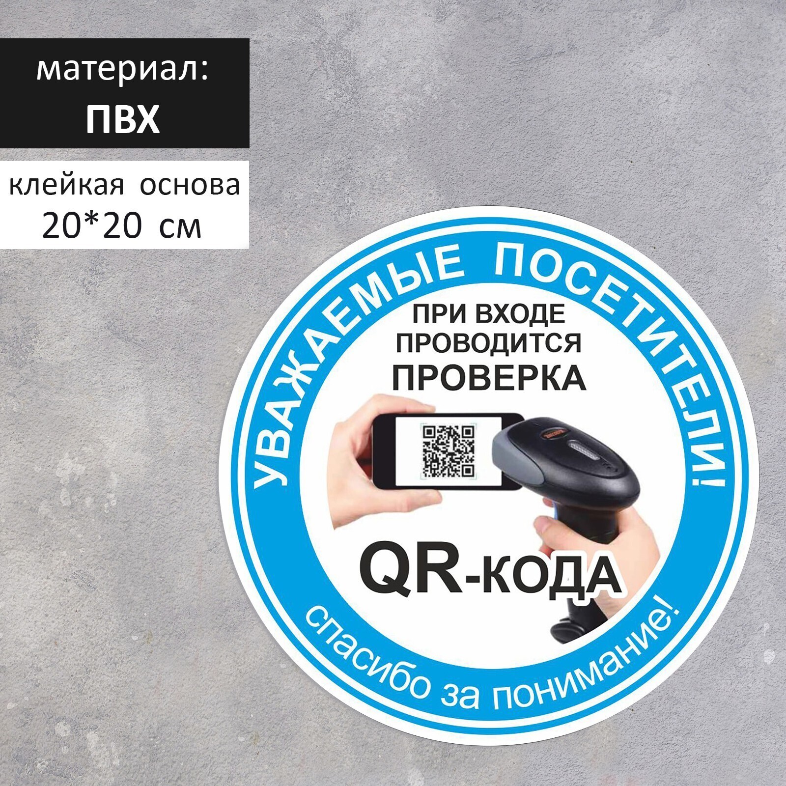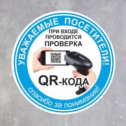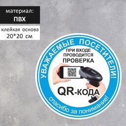 Табличка "Вход без QR - кода запрещен!" 200 х 200, цвет синий, клейкая основа