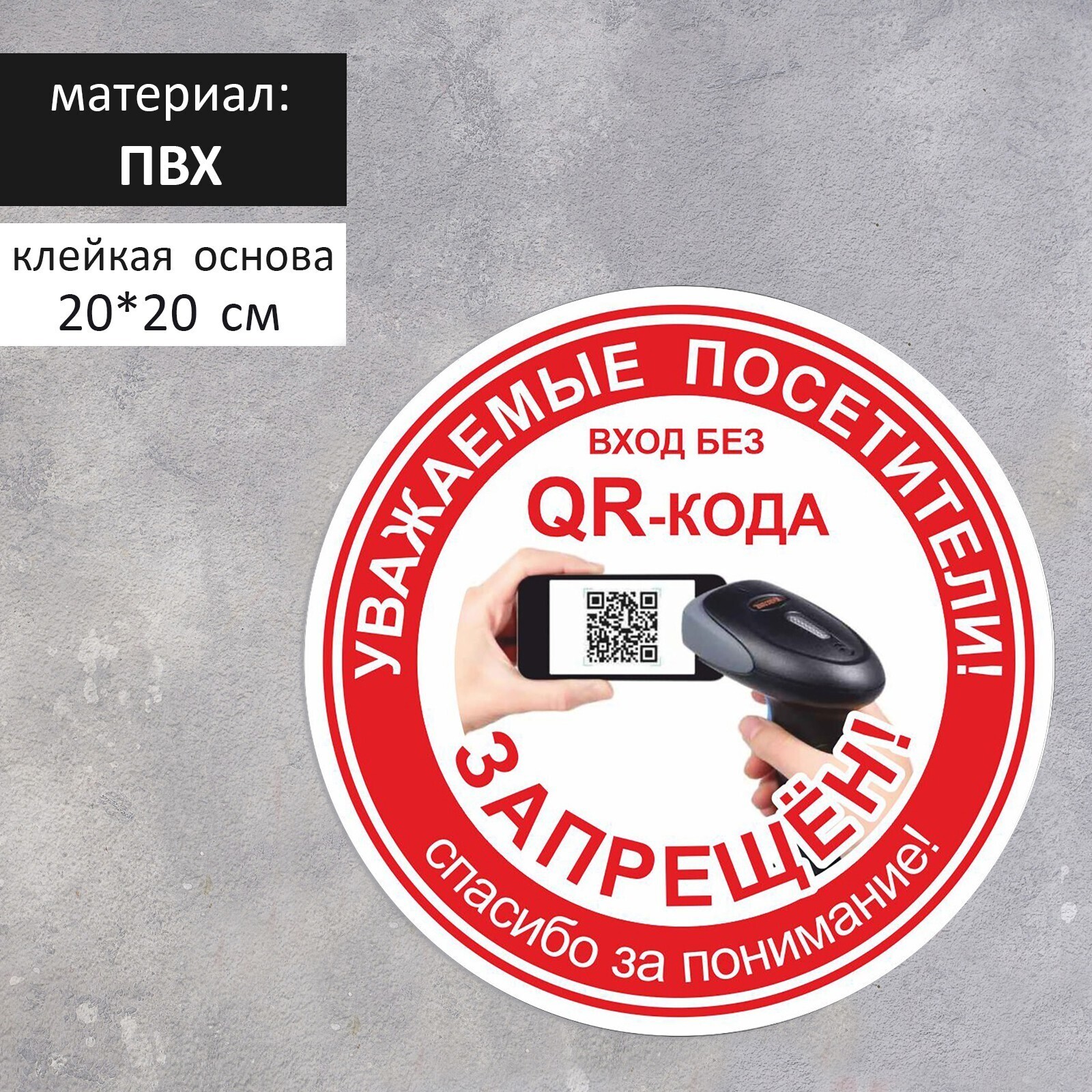 Табличка "Вход без QR - кода запрещен!" 200 х 200, цвет красный, клейкая основа
