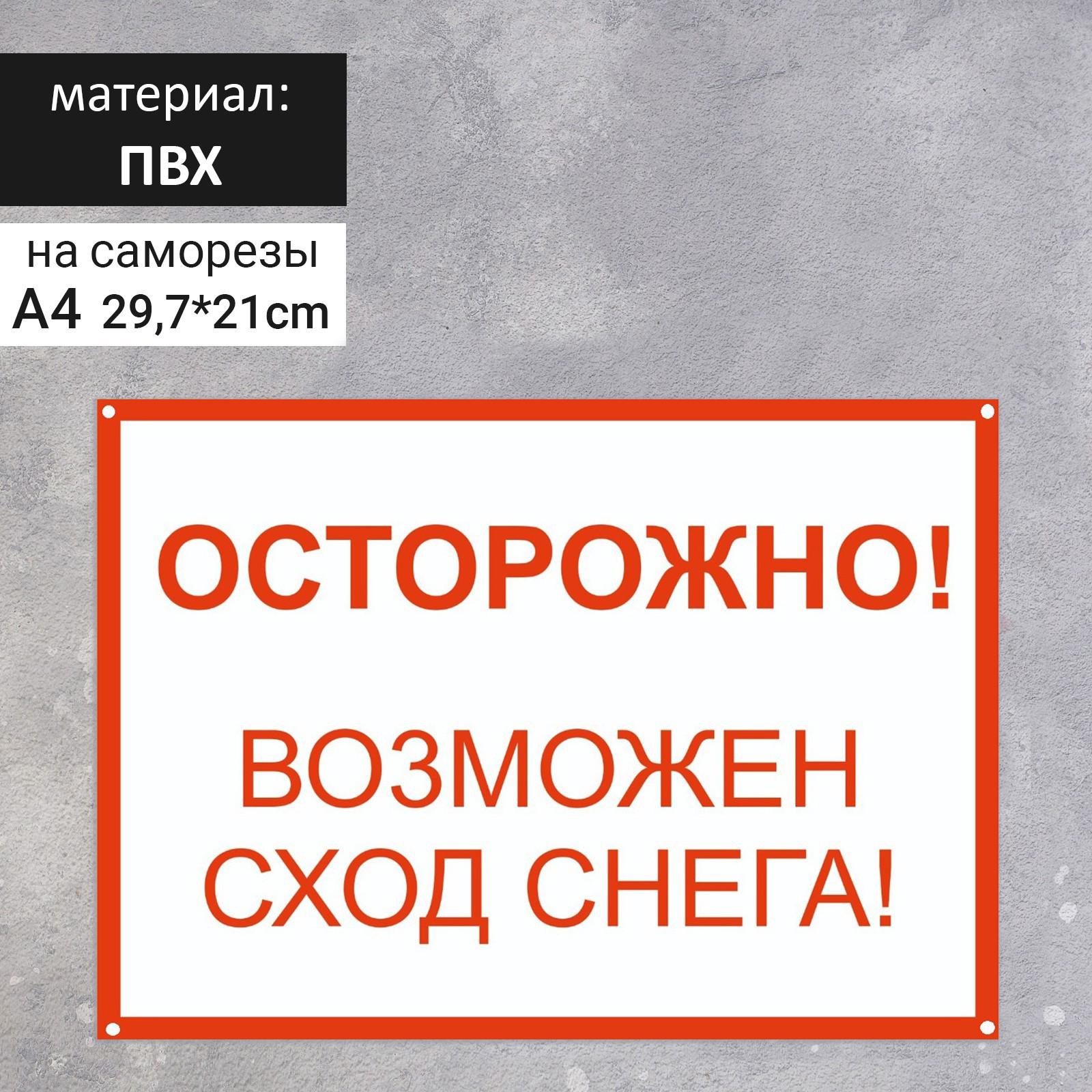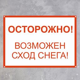 Табличка "Осторожно возможен сход снега"А4, с отверствиями для саморезов, цвет красно-белый