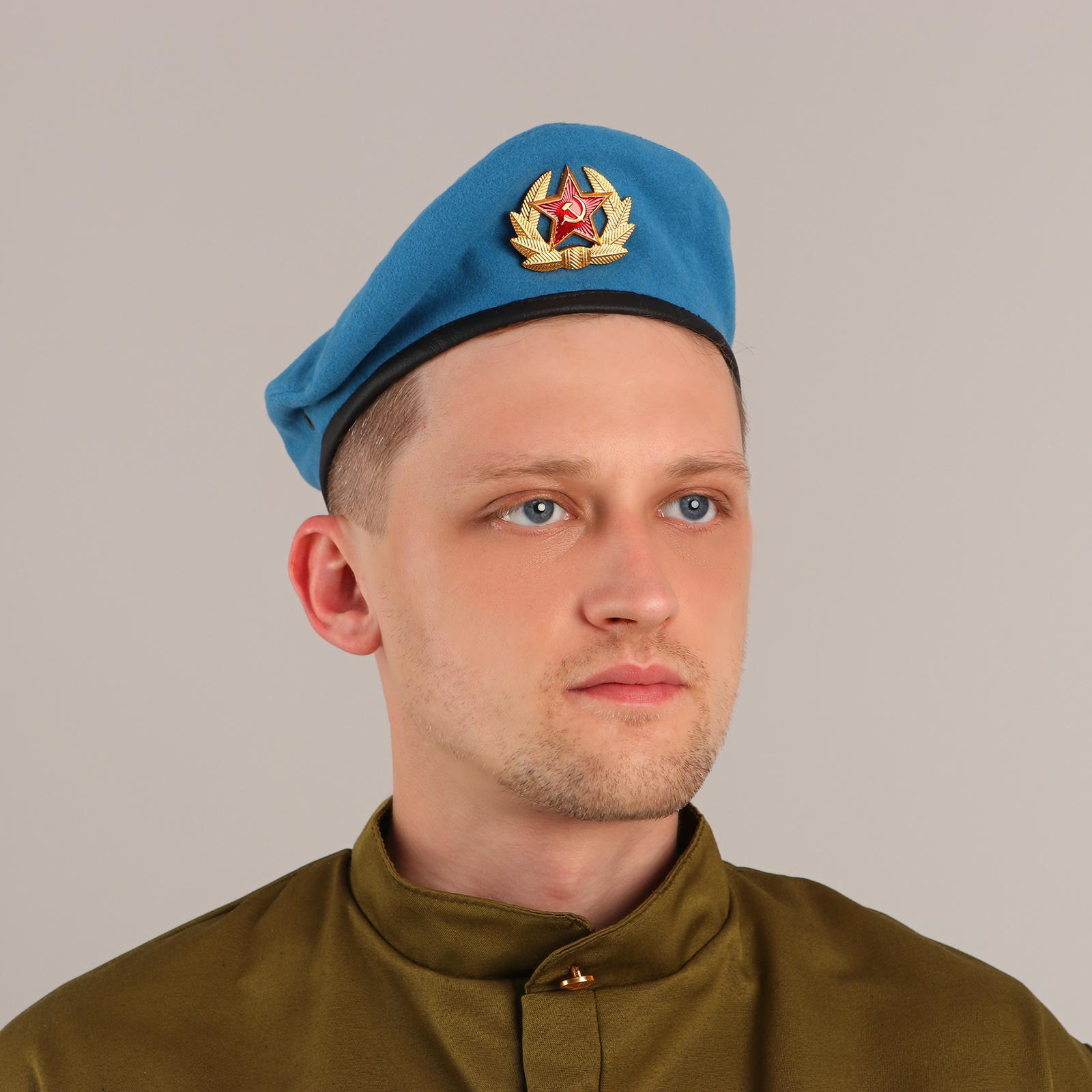 Берет голубой, сукно, подклад хлопок, р. 57-58, уголок ВДВ 8,5 х 2,5 см