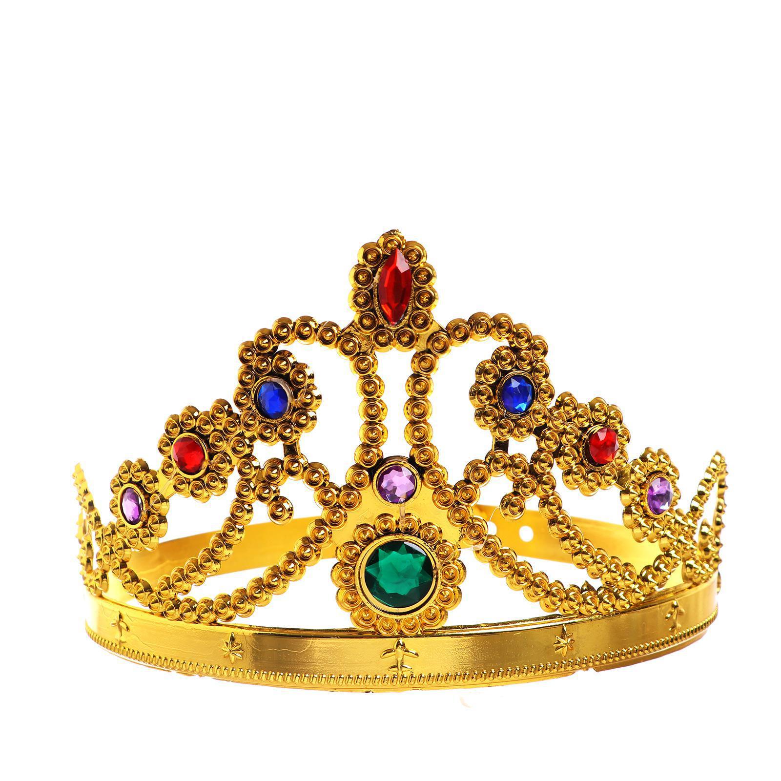 Короны — отличный вариант создания задорного настроения на детском празднике. Они хорошо держатся на голове. Необязательно покупать целый костюм, можно надеть на ребёнка корону, а детская фантазия сделает всё остальное.
