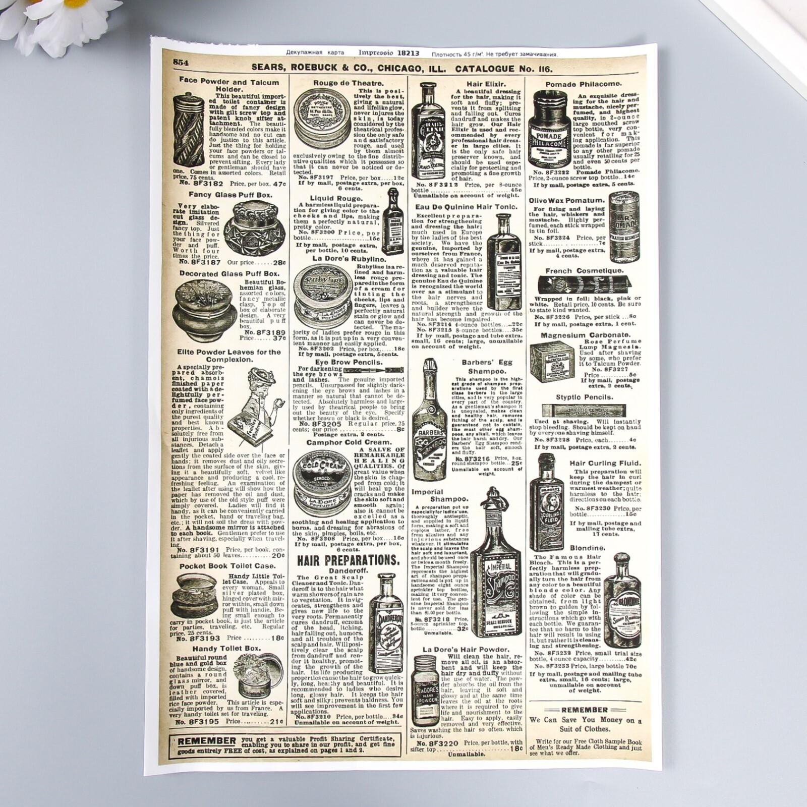 Декупажная карта "Газета" плотность 45 г/м2 формат А4