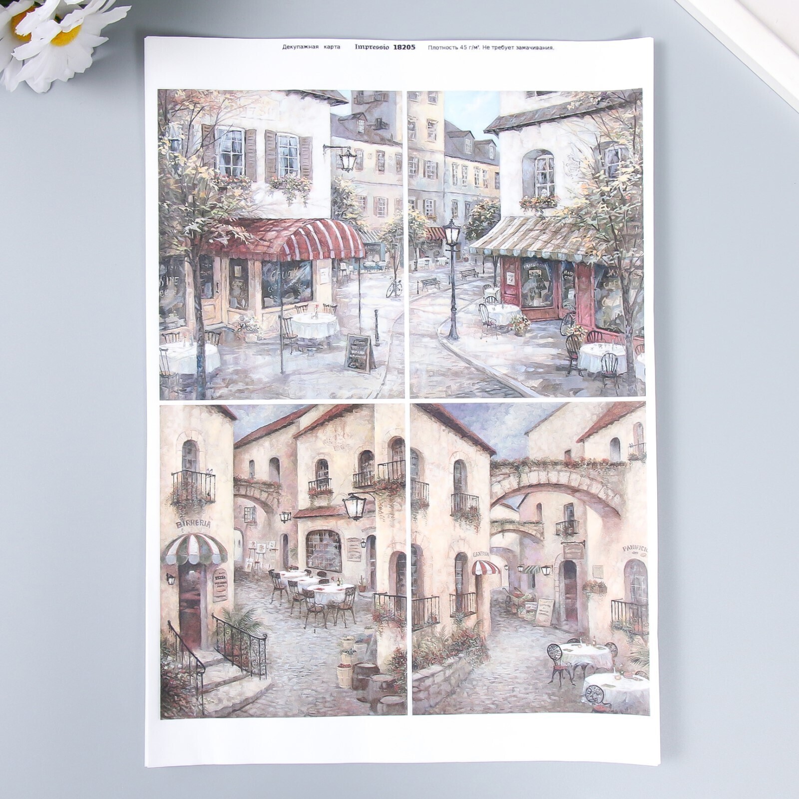 Декупажная карта "Улочки" плотность 45 г/м2 формат А4