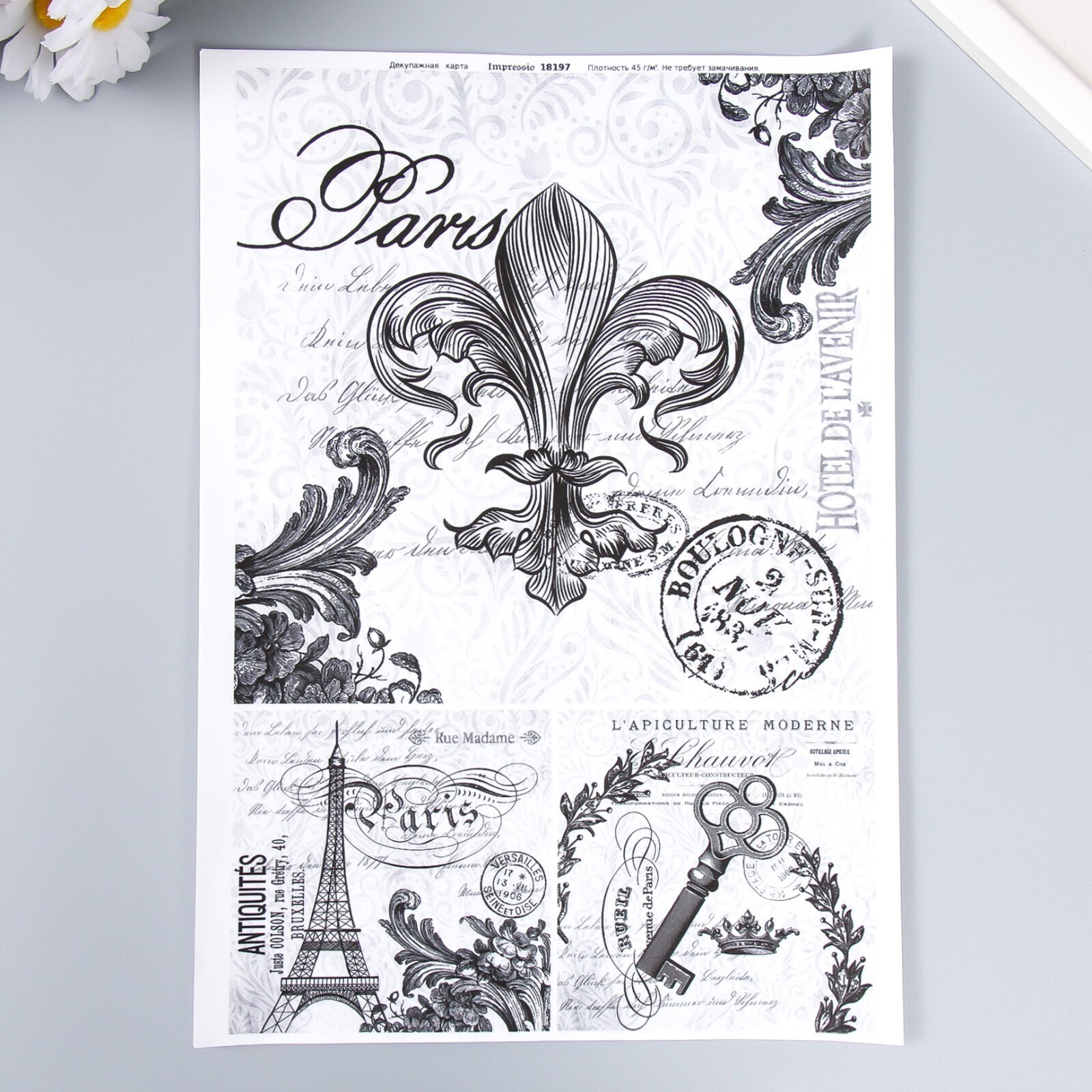 Декупажная карта "Париж" плотность 45 г/м2 формат А4