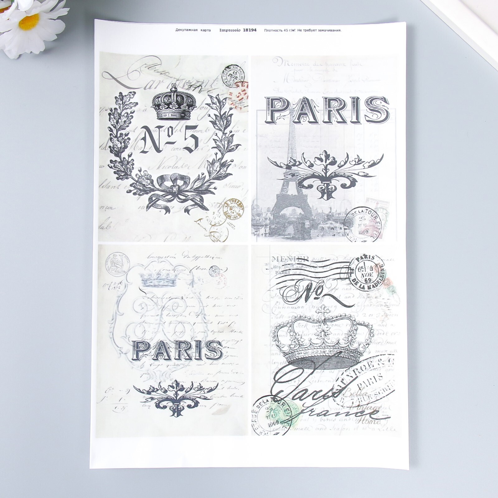 Декупажная карта "Париж" плотность 45 г/м2 формат А4