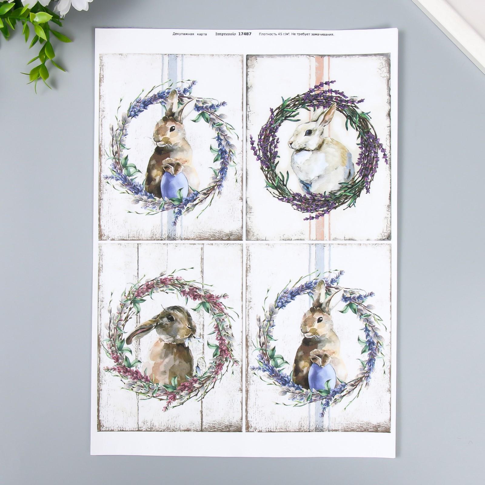 Декупажная карта "Кролички" плотность 45 г/м2 формат А4