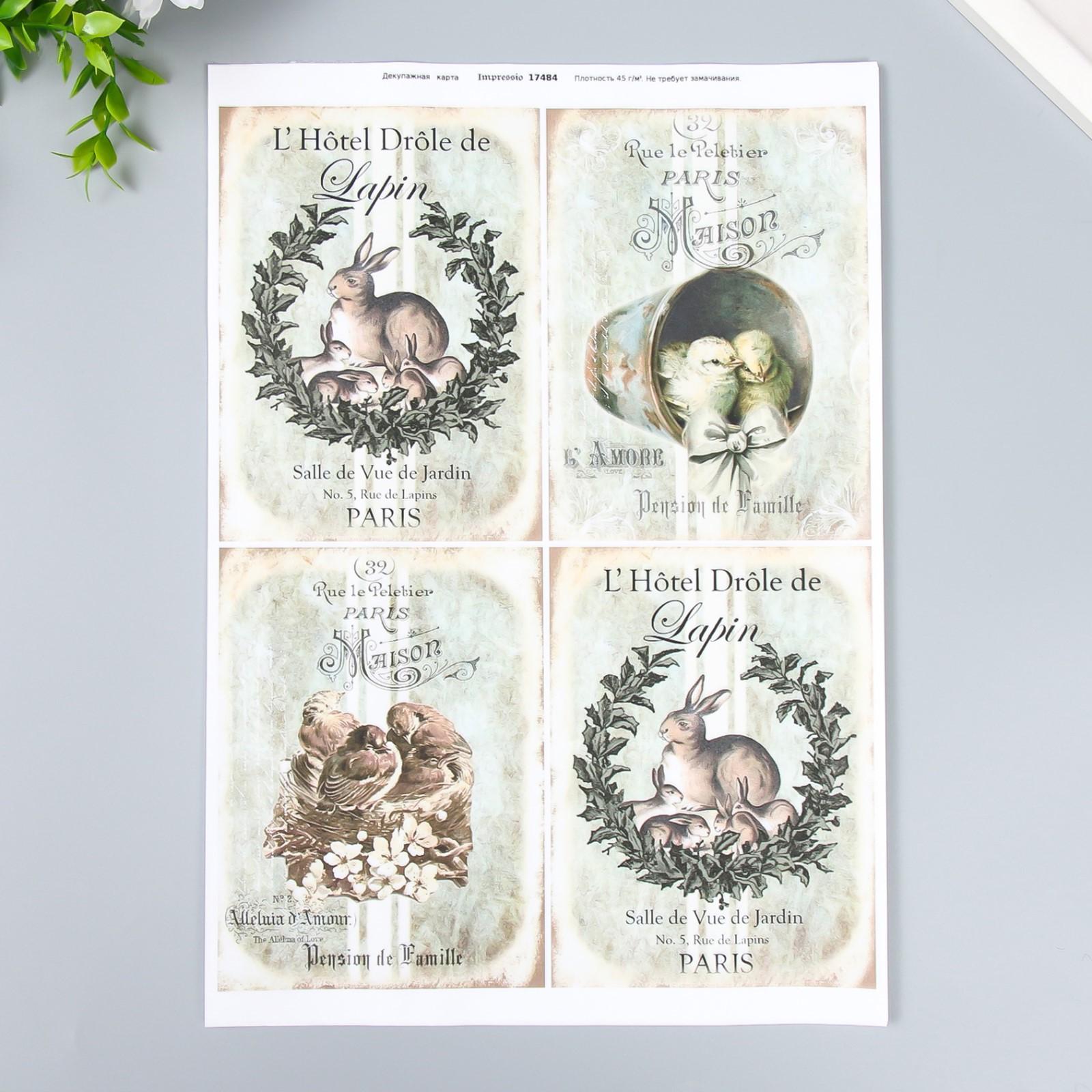 Декупажная карта "Кролики, цыплята" плотность 45 г/м2 формат А4