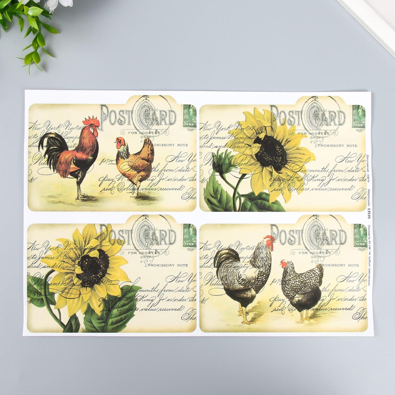 Декупажная карта "Птицы, подсолнухи" плотность 45 г/м2 формат А4