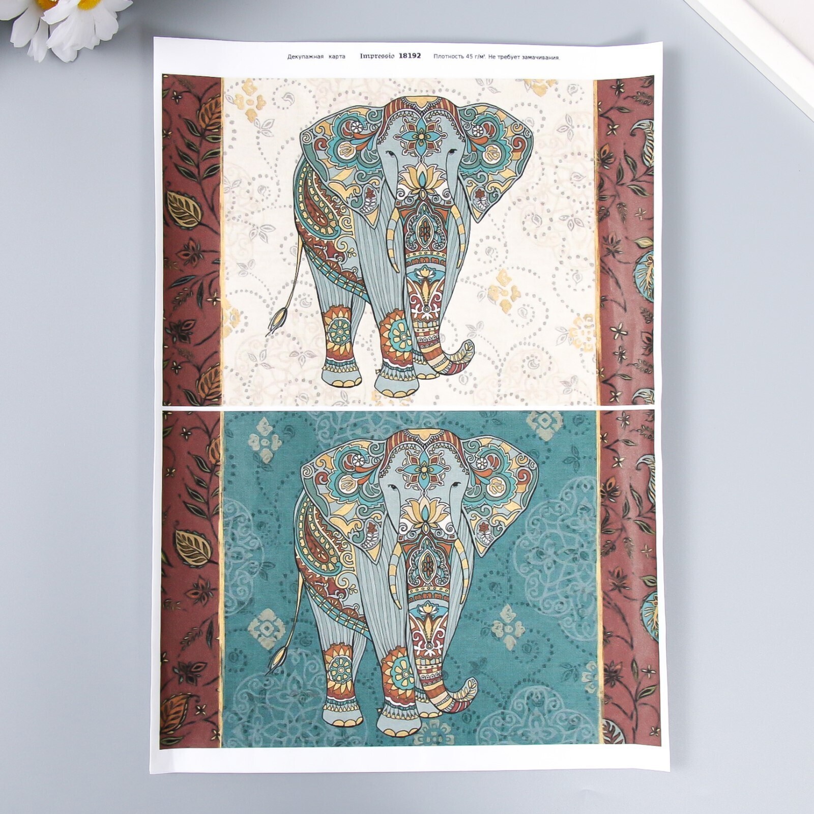 Декупажная карта "Слоны в узорах" плотность 45 г/м2 формат А4