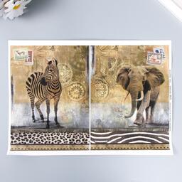 Декупажная карта "Зебра,слон" плотность 45 г/м2 формат А4