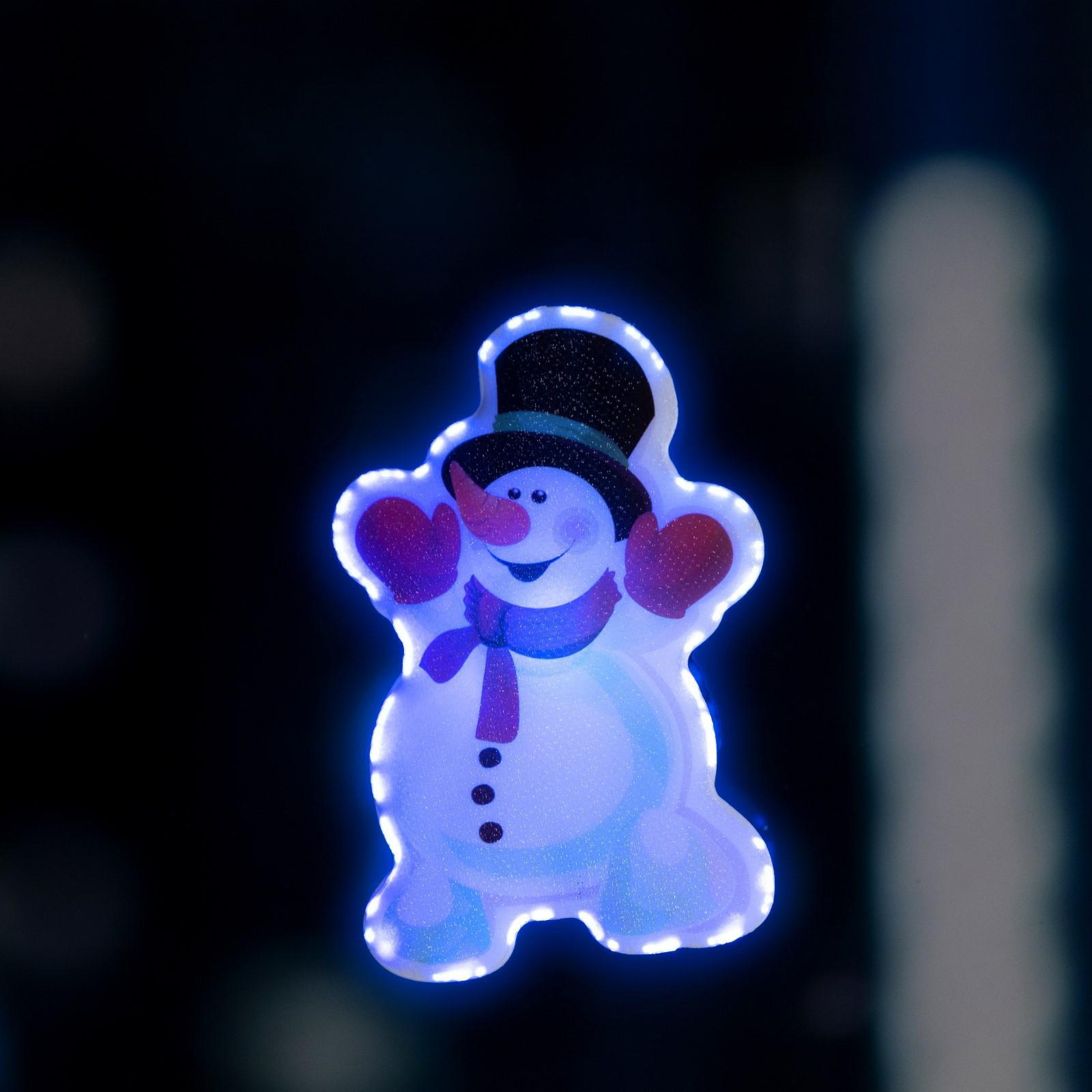 Светодиодная игрушка на липучке «Снеговик в шляпе» 7 × 10 см, батарейки LR44х3, свечение мульти