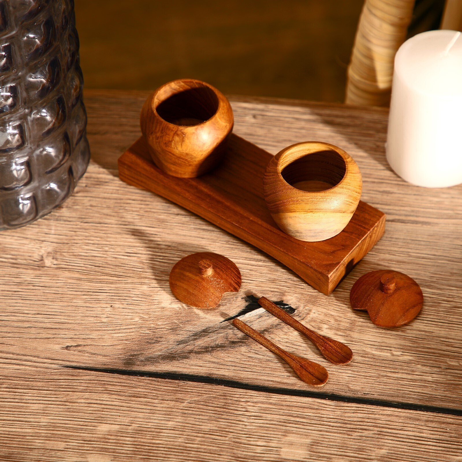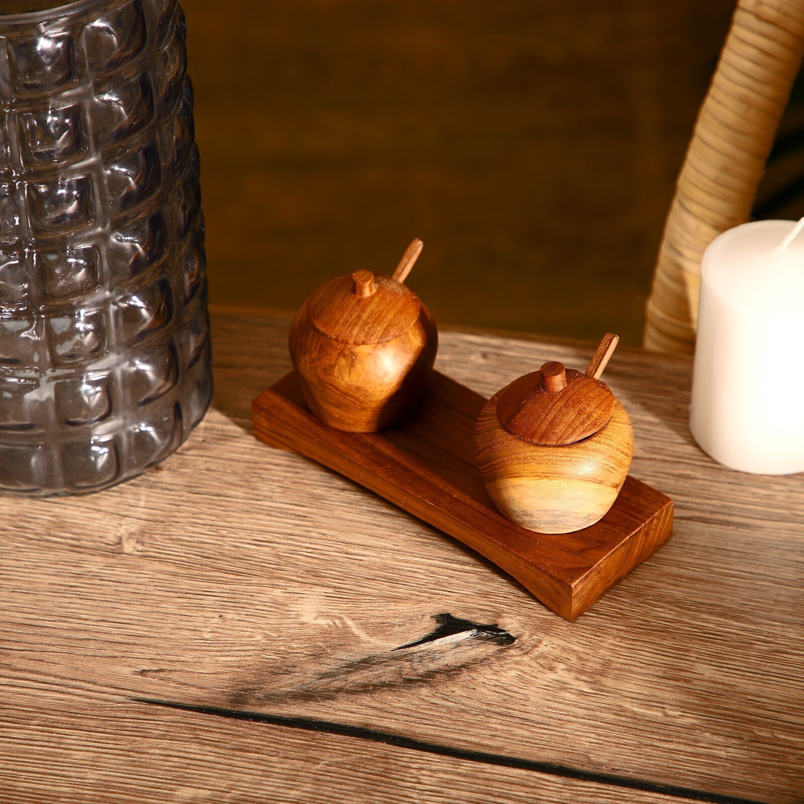 Баночки для специй "Соль, перец" 15х6х7 см, тиковое дерево
